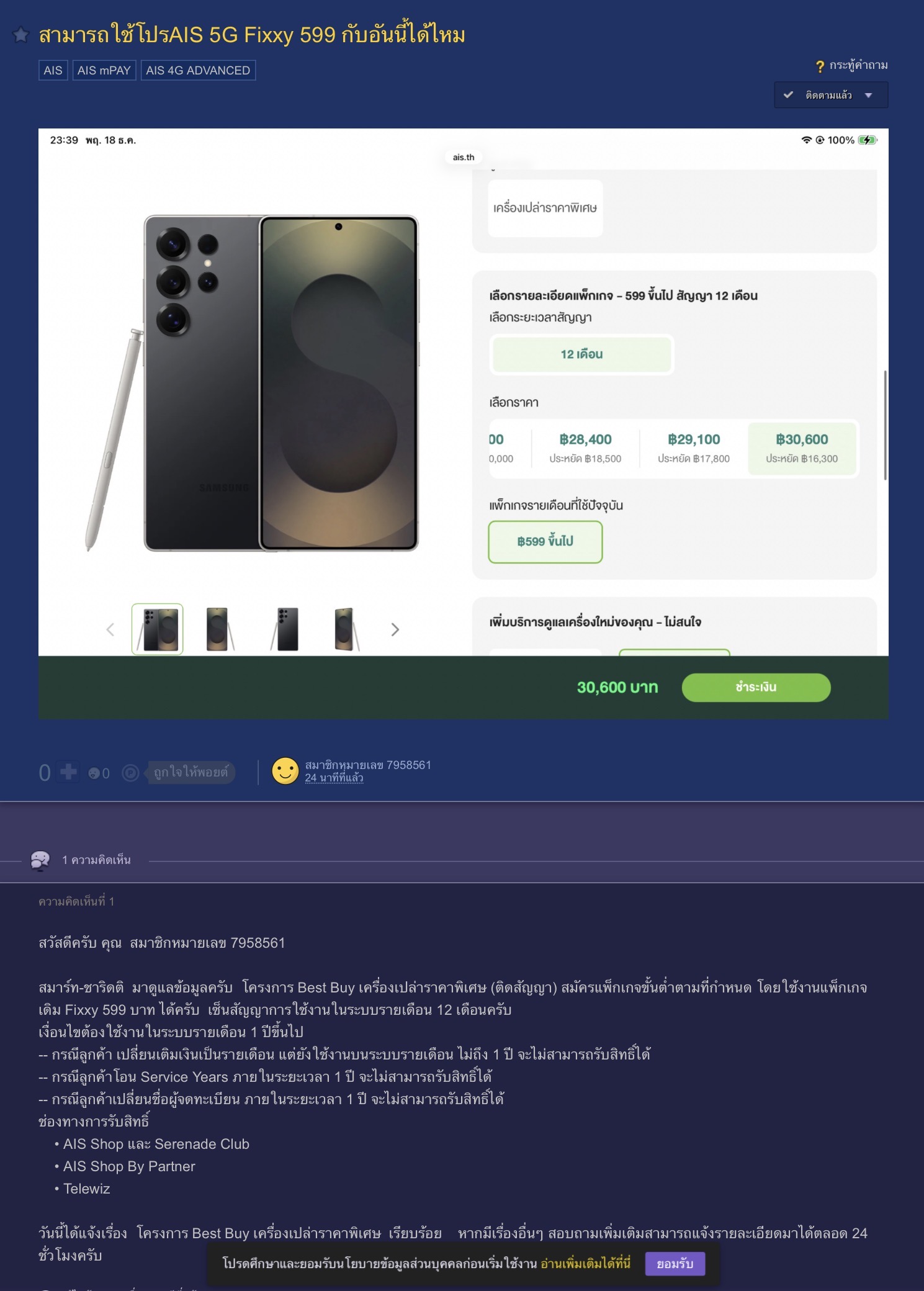 จากโพสต์นี้ หากผมใช้รายเดือนมา4ปี แต่เป็นโปร499 สามารถเปลี่ยนเป็น599แล้วรับสิทธิ์ได้เลยไหมครับ