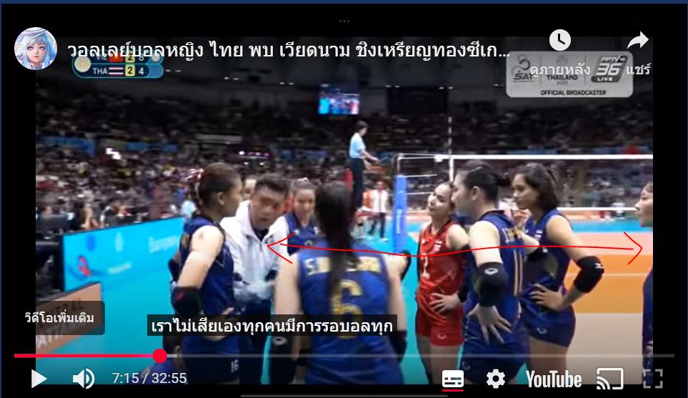 เลยเอาคลิปมาฝากให้ช่วยกันพิจารณาว่า สาเหตุที่มีการเปลี่ยนมือเซตในเซตที่ 5 ตอนเปลี่ยนแดน แต้มที่ 8 นั้นเป็นความคิดของใคร 1. ผู้ช่วยโค้ชผู้ชาย 2. อรอุมา หรือ 3. โค้ชอ๊อด