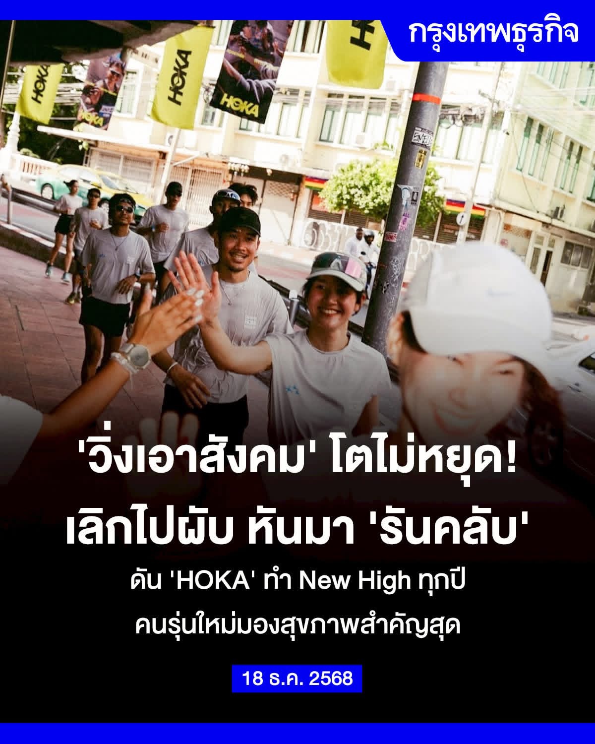 รันคลับโตไม่หยุด! #GenZ พบปะสังสรรค์แบบใหม่ หยุดกินดื่มเที่ยว หันนัดวิ่ง-เจอร้านกาแฟ “HOKA” ชี้ ธุรกิจกีฬาได้รับผลกระทบน้อยแม้เศรษฐกิจซบเซา หลังโควิด-19 คนตระหนักสุขภาพสำคัญที่สุด คาด ปีหน้าตลาดรองเท้าวิ่งถึงจุดพีคสุด