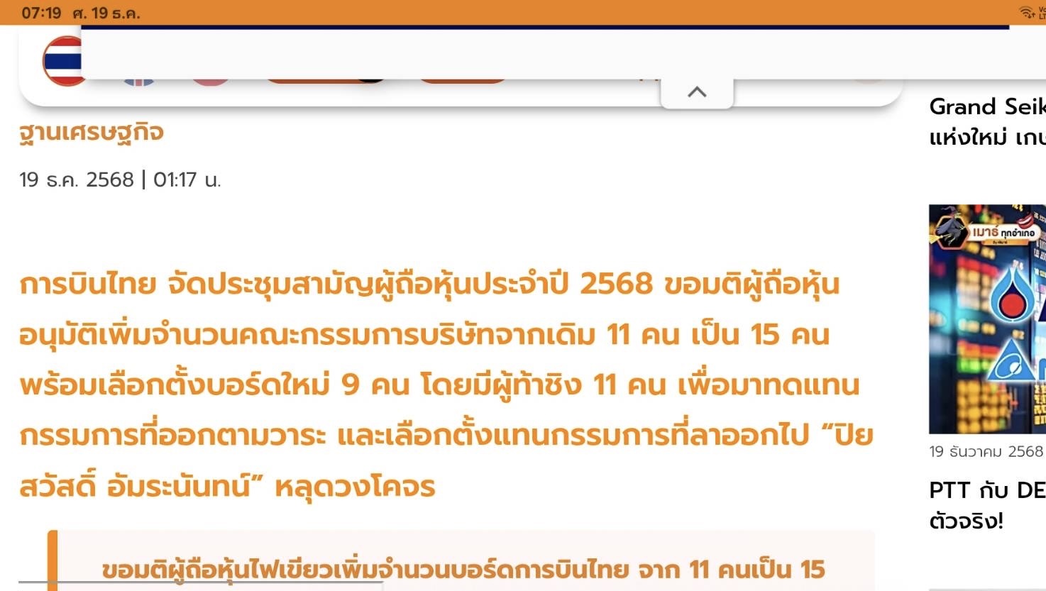 ชงเลือกตั้งบอร์ดใหม่ การบินไทย 9 คน จากผู้ท้าชิง 11 คน ประชุมผู้ถือหุ้นThai วันนี้ ปิยะสวัสดิ์ ปิ๋วๆๆๆๆๆ ?