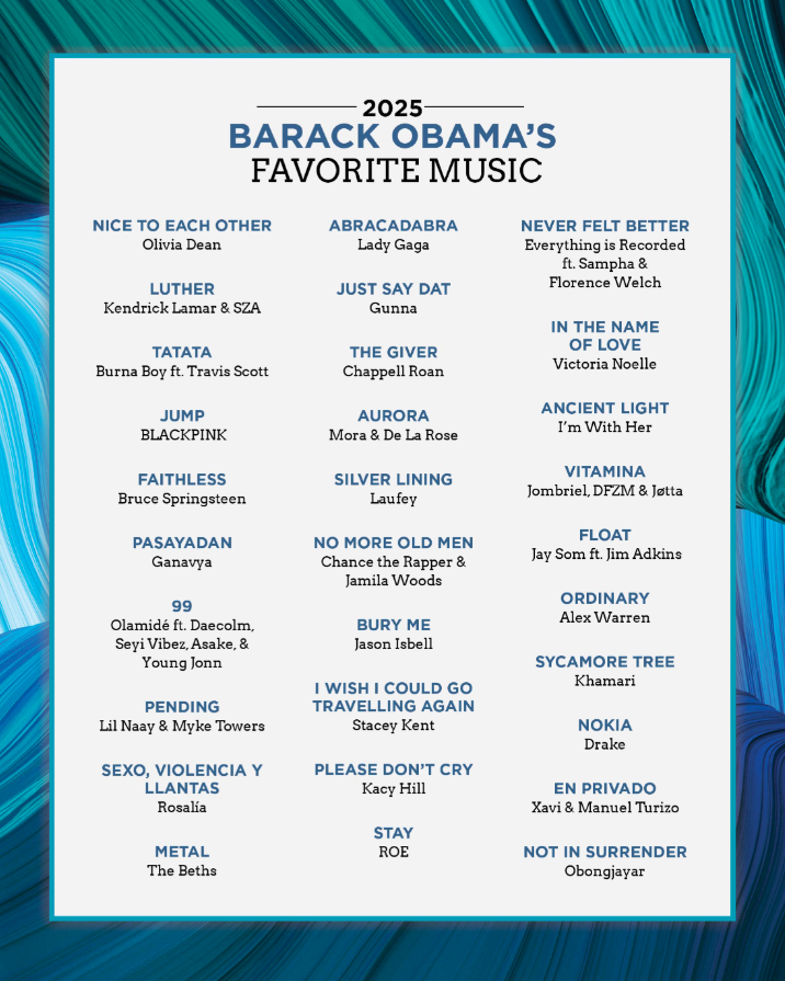 Barack Obama อดีตประธานาธิบดีผู้ยิ่งใหญ่ของอเมริกาเผยเพลงที่ชื่นชอบปี 2025 เพลง JUMP เป็นเพลงเคป๊อปหนึ่งเดียวในลิสต์นี้