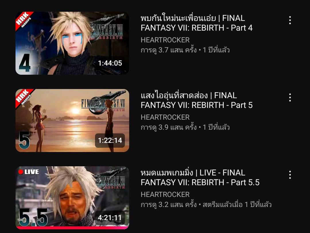 คือผมอยากดู final fantasy vii ที่พี่แกเคสมากแต่ทำไมพี่แกเล่นถึงได้ไม่กี่ตอนแล้วพี่แกก็หยุดไปเลยอีกอย่างไลฟ์สดคลิปวีดีโอนึงผมเองก็ไม่ได้ไล่ตามไปดูไม่รู้ว่าพูดถึงอะไรเกี่ยวกับเกมนี้มีใครได้ติดตามพี่แกทราบสาเหตุบ้างครับ 🫡