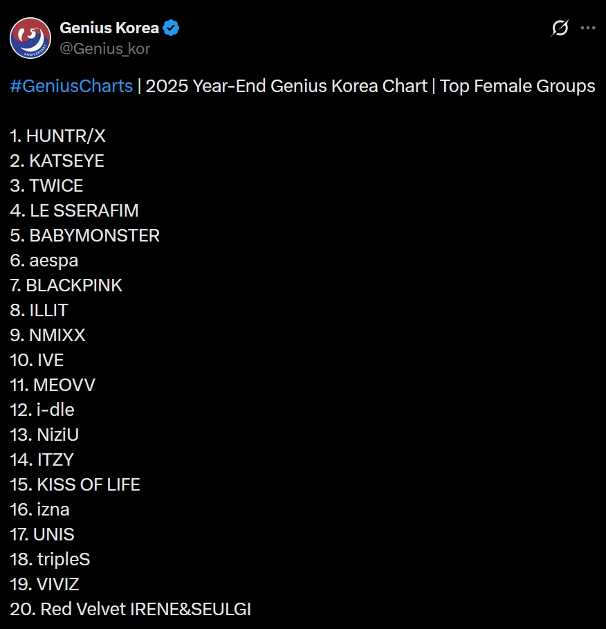 2025 Year-End Genius Korea Chart | Top Female Groups