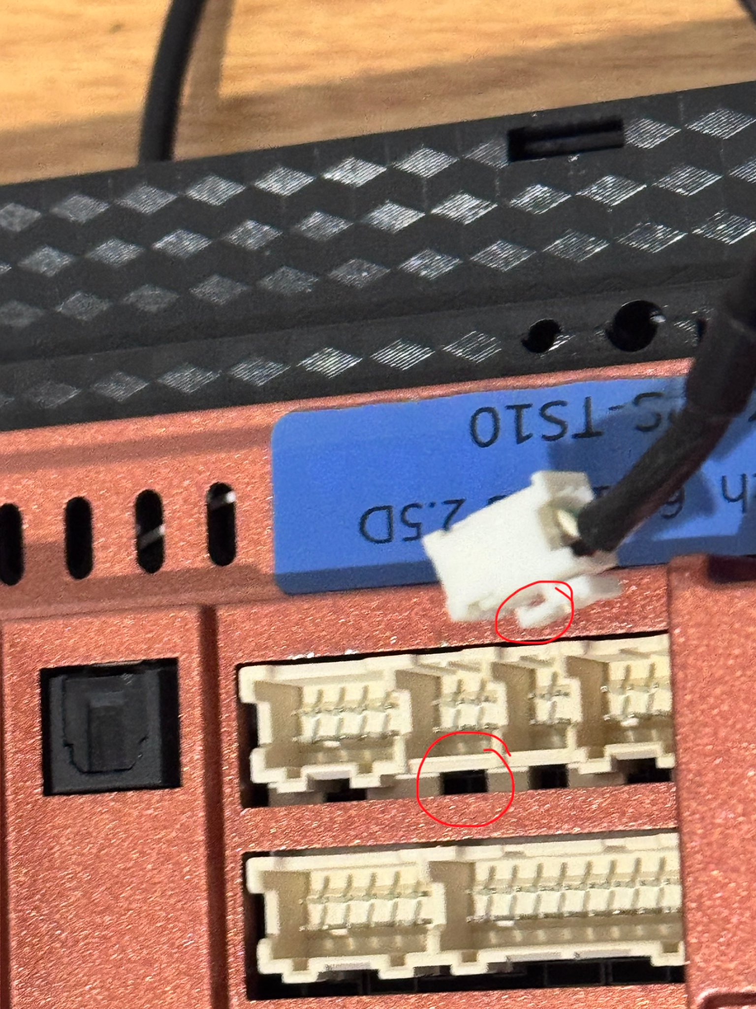 2. ปลั๊กทุกตัวจะเข้าคู่มันเองเสมอ ไม่มีตัวไหนเสียบแทนกันได้ เช่น 3 พิน ต้องคู่ 3 พิน จะเอา 2 พินไปเสียบ 3 พินไม่ได้ และทุกครั้งที่เสียบปลั๊ก จะดัง แก๊ก เพราะมีตัวล็อค ถ้าไม่ดัง ให้บีบตัวล็อค แล้วดึงออกเสียบใหม่ว่าเสียบถูกไหม (เขี้ยวล็อคตรงไหนก็บีบตรงนั้นแหละ)