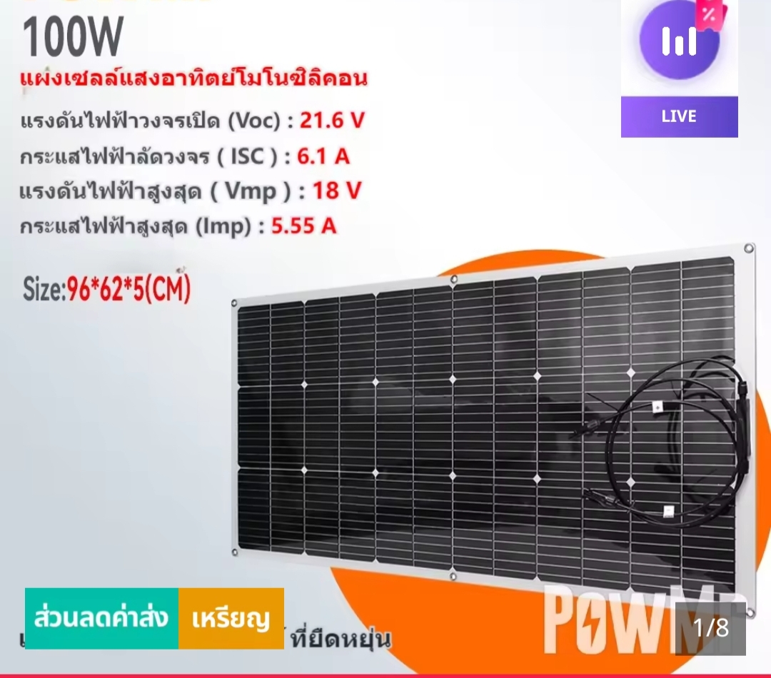 ใช้แผง Solar cell ขนาด 100w ชาร์จโทรฯได้ไหม..?