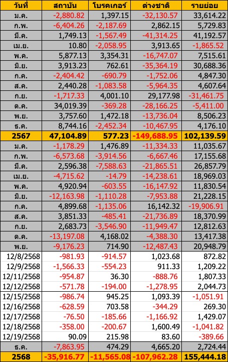Sinthorn Summary 12/12/2568 : ต่างชาติขายสุทธิ -1,278.95 ลบ.
