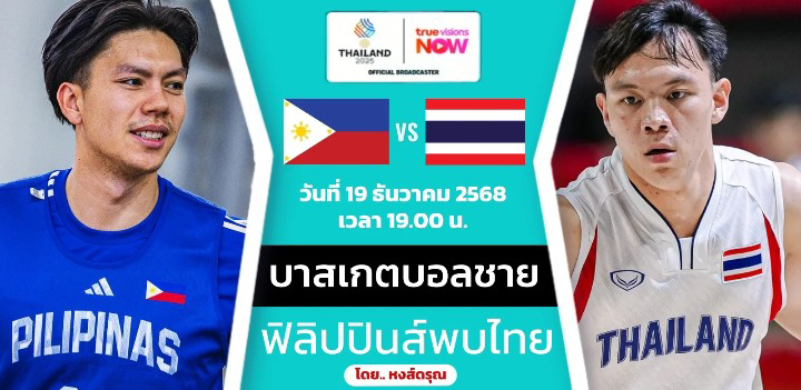 ถ่ายทอดสดทางช่อง T Sports 7 และออนไลน์ทางแอปพลิเคชัน True Visions NOW ช่อง NOW SEA GAMES 7 นี่คือเกมสำคัญที่อาจสร้างประวัติศาสตร์หน้าใหม่ให้วงการบาสเกตบอลไทย หากสามารถโค่นมหาอำนาจยัดห่วงแห่งอาเซียนอย่างฟิลิปปินส์ได้สำเร็จ