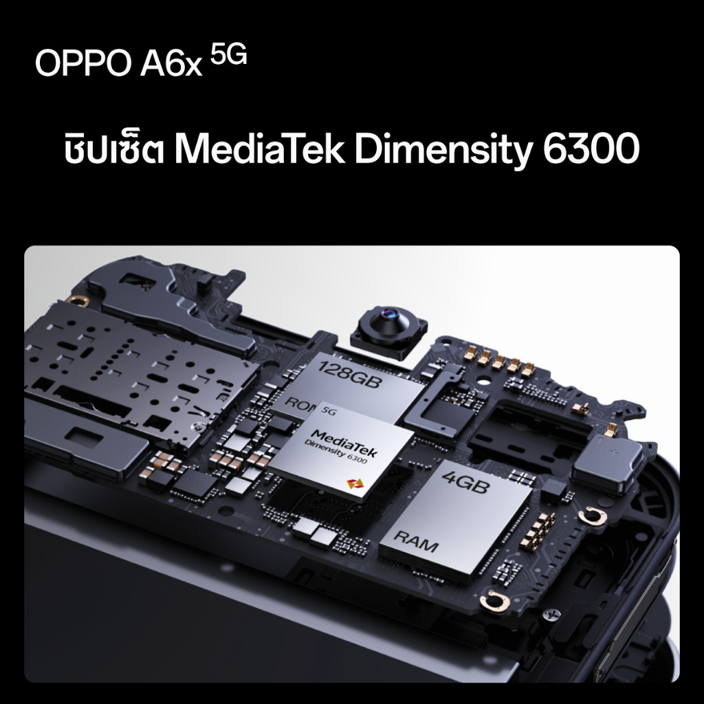 ชิป MediaTek Dimensity 6300 รองรับ 5G ทำให้การใช้งานทั่วไปลื่นไหล เหมาะกับคนที่ต้องพกเครื่องเดียวทำหลายอย่าง ทั้งเรียน ทำงาน และความบันเทิง โดยเฉพาะสายที่เน้นแบตอึดและจอใหญ่ ถ้ากำลังมองหามือถือ 5G ที่บาลานซ์สเปกครบและใช้งานได้ยาว ๆ OPPO A6x 5G ถือว่าเข้าลิสต์ได้แบบไม่ฝืน ⚡