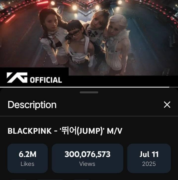 JUMP MV has surpassed 300M views and 6.2M likes on YouTube in just 161 days (5 months)