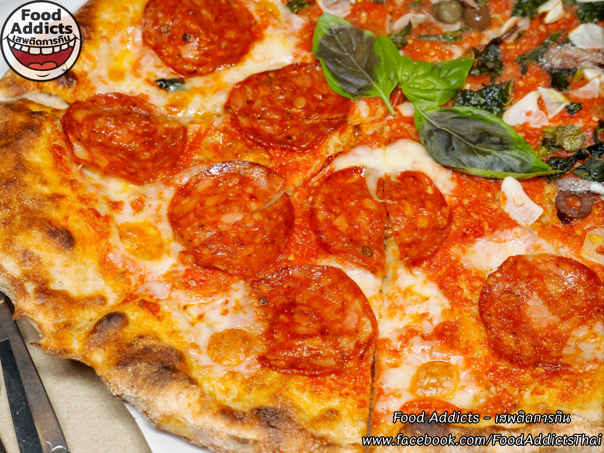 รายการแรกยกวางเสิร์ฟถึงโต๊ะแบบรวดเร็วยกเว้นเมื่อลูกค้านั่งเต็มร้านอาจจะต้องใช้เวลาคอยนานขึ้นอีกหน่อยเพราะคุณเชฟร่วมมือกันปรุงตกแต่งทำทีละถาดแสนตั้งใจเริ่มต้นกันที่ "Puttanesca" ไซส์ Haft ราคา 170 บาท ประกอบไปด้วยน้ำซอสมะเขือเทศหมักธรรมชาติโฮมเมดเข้มข้น/ปลาแอนโชวี่/ผลมะกอกดำ/เมล็ดเคเปอร์ดอง/กระเทียมสไลซ์บาง/พริกขี้หนูป่น/ใบโหระพาใช้มือขยี้ให้กลิ่นหอมระเหยออกมาสูงสุดและน้ำมันมะกอกเอ็กซ์ตร้าเวอร์จิ้นเค็มเปรี้ยวสดชื่นฟินได้เรื่อยๆไม่รู้สึกเบื่อ สำหรับครึ่งหนึ่งขอหมวดคลาสสิกธรรมดาพื้นฐานนั่นก็คือ "Pepperoni" ราคา 230 บาท พื้นฐานคล้ายเดิมเปลี่ยนจากเหล่าสมุนไพรสู่มอสซาเรลล่าชีสแท้ 100% ซึ่งมีคุณสมบัติยืดยาวสะใจเรียงสลับกับเปปเปอโรนีหรือไส้กรอกซาลามี่รมควันตากแห้งสไตล์อเมริกันสไลซ์แผ่นบางแป้งด้านล่างสัมผัสเหนียวนุ่มเคี้ยวสู้ฟันกึ่งโมจิญี่ปุ่นเพราะผสมข้าวหมักจุลินทรีย์กากสาเก (โคจิ) จากธรรมชาติแทนผงยีสต์ปกติจึงฟูละเอียดแทรกฟองอากาศเยอะผิวกรอบตรงขอบบางใส่เครื่องแน่นเกือบเต็มแผ่นโดยขนาดมาตรฐาน 12 นิ้วสามารถตัดแบ่งได้มากถึง 8 ชิ้นใหญ่ วิธีกินให้อร่อยเด็ดยิ่งขึ้นลองเทราดน้ำมันพริกหมาล่า "Hot Chillie Sauce" สูตรลับเผ็ดร้อนชาลิ้นถึงเครื่องเทศฉบับจีนเสฉวนสักหน่อยบอกเลยว่าแซ่บจี๊ดจ๊าดของจริงหยิบใส่ปากไม่หยุดแนะนำห้ามพลาดครับ