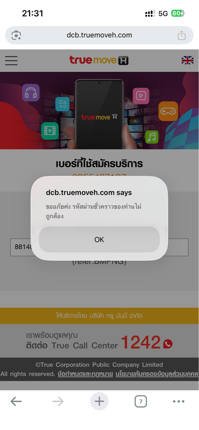 อยู่ต่างประเทศ ต้องการรหัสotpด่วนค่ะ true
