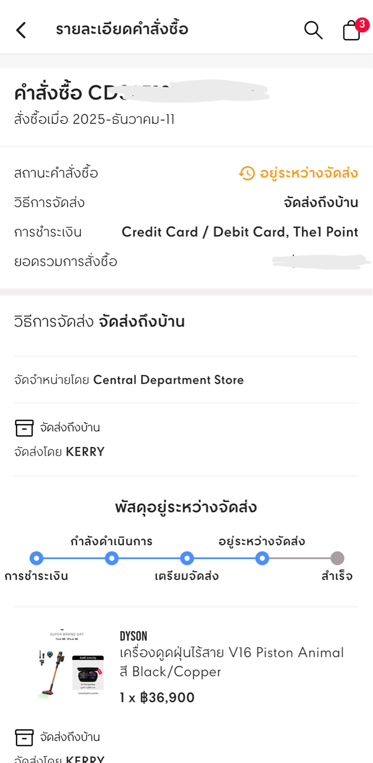 คืนวันที่11ธันวาคม เราได้สั่งสินค้าเป็นเครื่องดูดฝุ่นDyson รุ่น V16 จากCentral App เพราะเห็นว่ามีส่วนลดและเราก็อยากใช้คะแนนthe 1 ที่กำลังจะหมดอายุ เลยได้ส่วนลดเพิ่มอีกนิดหน่อย พอวันที่13ธันวาคมก็เช็คstatusจากเลขTrackingของKerry Express ขึ้นว่าพัสดุออกจากศูนย์กระจายสินค้าแล้ว หลังจากนั้นผ่านมาทุกวันก็ไม่มีอัพเดทอะไรเพิ่มเติมจากเลขTracking อีกเลย