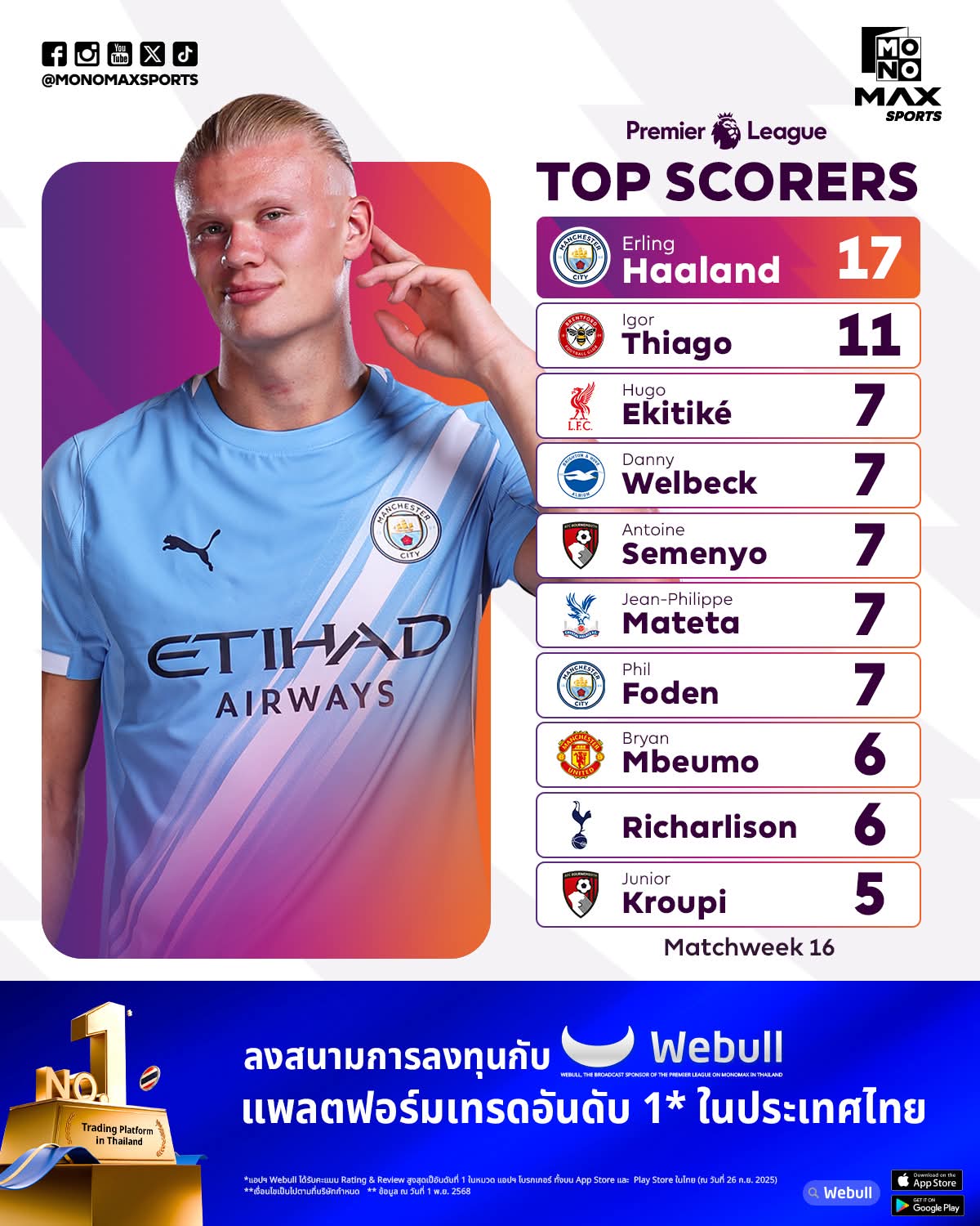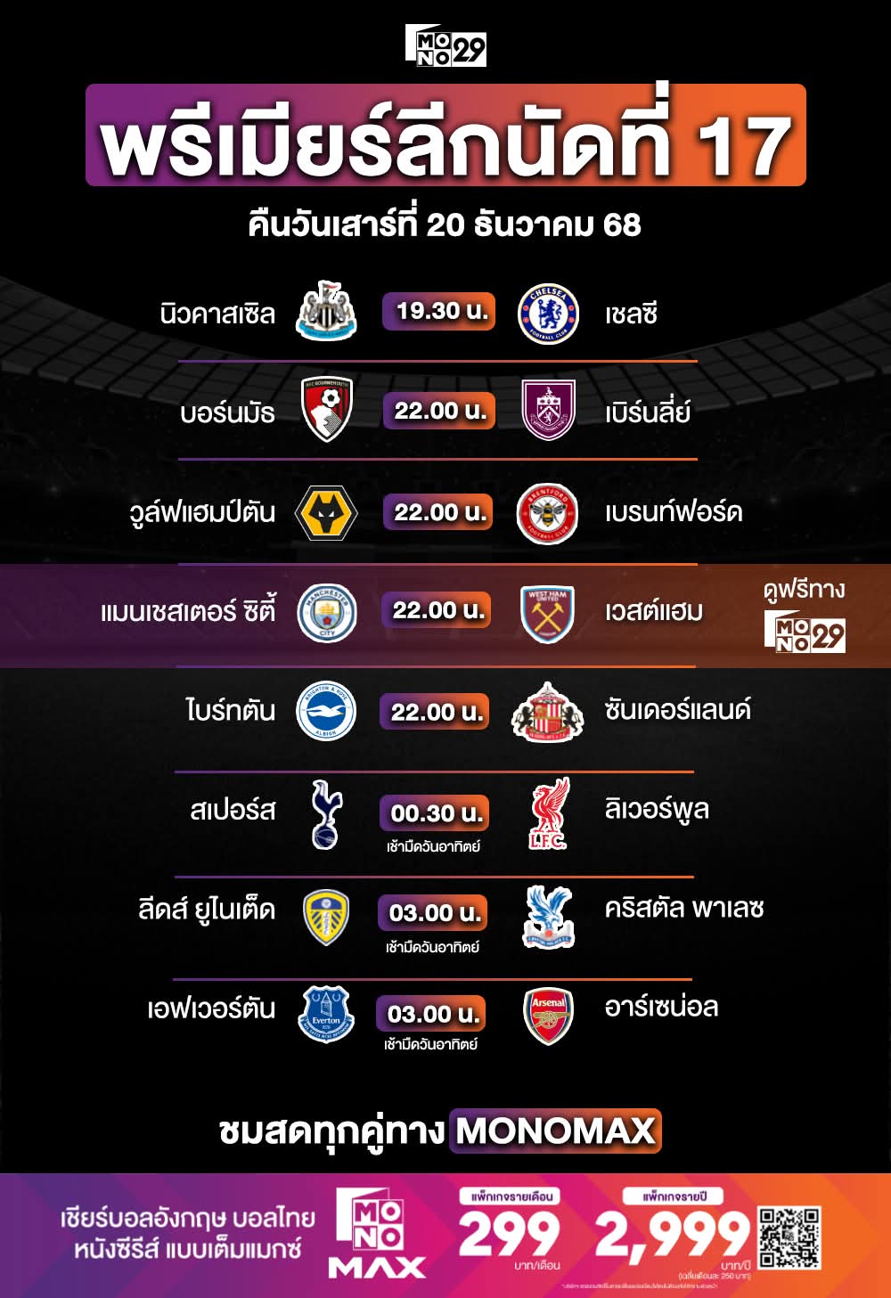 ⚽🏴 โปรแกรมพรีเมียร์ลีก นัดที่ 17 📌 คืนวันเสาร์ ที่ 20 ธันวาคม 68 📺 #MONO29 #MONOMAX 🔴