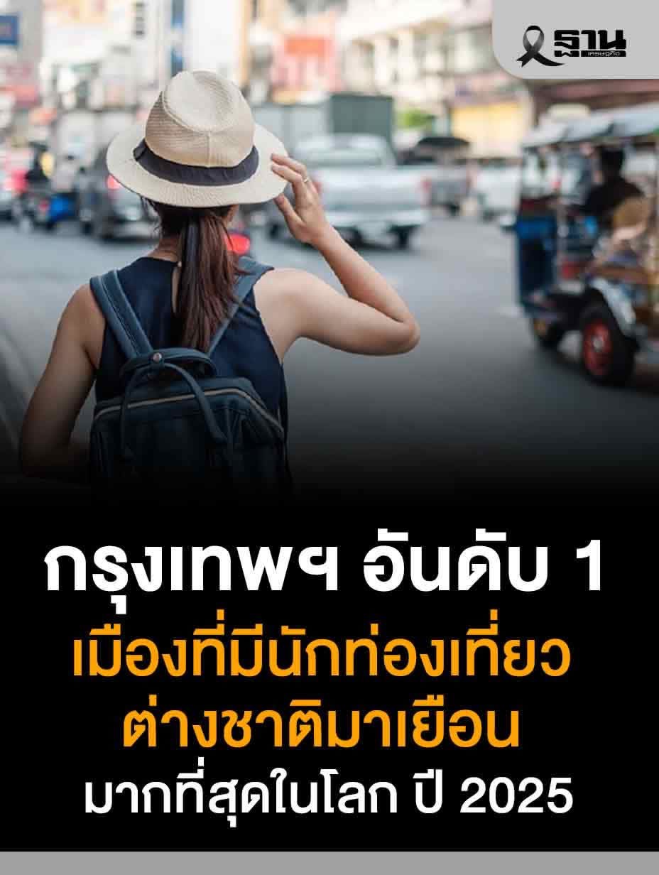นางสาวฐาปนีย์ เกียรติไพบูลย์ ผู้ว่าการการท่องเที่ยวแห่งประเทศไทย เปิดเผยว่า กรุงเทพมหานครครองอันดับ 1 เมืองที่มีนักท่องเที่ยวต่างชาติเข้าเยือนมากที่สุดในโลก ปี 2568 ด้วยจำนวนกว่า 30.3 ล้านคน แซงหน้าเมืองท่องเที่ยวสำคัญอย่างฮ่องกง ลอนดอน และปารีส ตอกย้ำภาพลักษณ์เมืองท่องเที่ยวระดับโลกที่นักเดินทางอยากมาเยือน