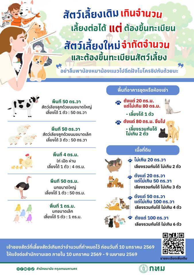 เรื่องที่บอกว่า ปี 69 จะจำกัดการเลี้ยงสัตว์ต่างๆในกรุงเทพฯ อยากทราบว่าอย่างหมาจอแมวจรจะทำยังไง อันนี้อยากรู้จริงๆ