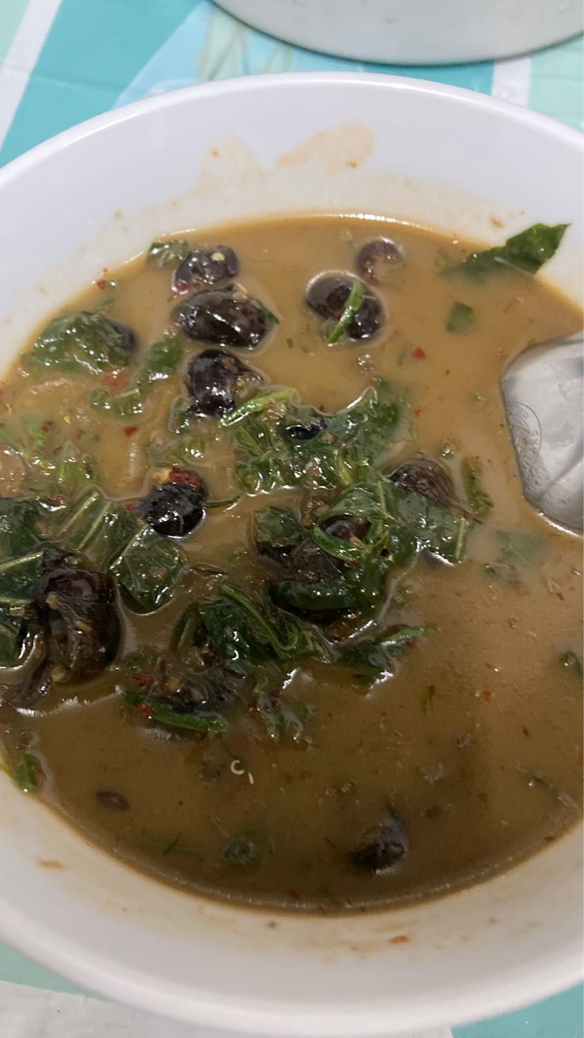 แกงคั่วหอยขม เป็นอีกหนึ่งแกงที่หาทานยากอยู่พอสมควร นานๆ จะหาทานได้ที ก็ยังอร่อยเหมือนเดิม แกงคั่วหอยขมเป็นแกงที่ใส่ใบชะพลู และชะอม แคะหอยกินแบบกรุบๆ น้ำแกงนี้คลุกข้าวร้อนๆ หอมมม อร่อยที่ซู๊ดดด พอจะมีใครชอบทานเหมือนกันบ้างไหมค่ะ นี้เป็นอีกหนึ่งแกงที่ไม่เคยทำทานเอง แต่ถ้าเจอก็ต้องซื้อมาทานตลอด ❤️🥰