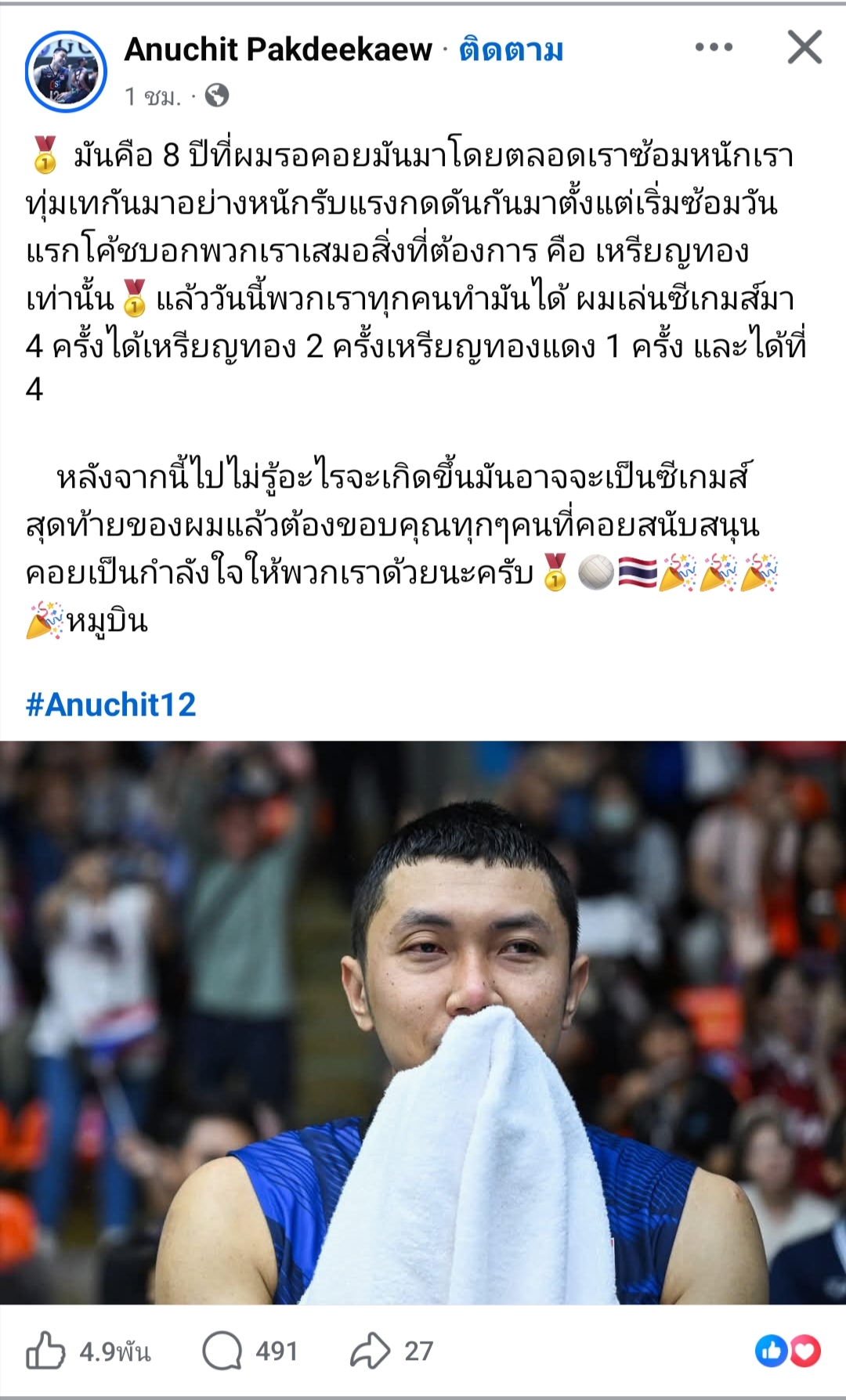 ซีเกมส์ครั้งสุดท้าย ไม่รู้ ชชอช.กับ เอเชียเกมส์ ยังอยู่ไหม แต่อนุชิต ยัง อายุน้อยอยู่เลย