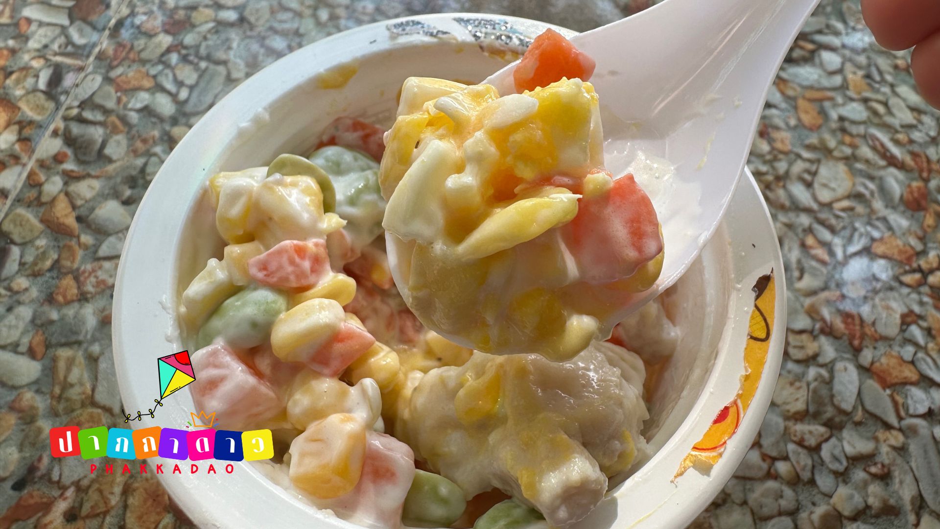 รสชาติคือมีความนัวมากกก น้ำสลัดรสชาติกลมกล่อม ไม่หวานเลี่ยนจนเกินไป ได้ความหวานธรรมชาติจากข้าวโพด และความมันจากไข่ต้ม เคี้ยวเพลินๆ