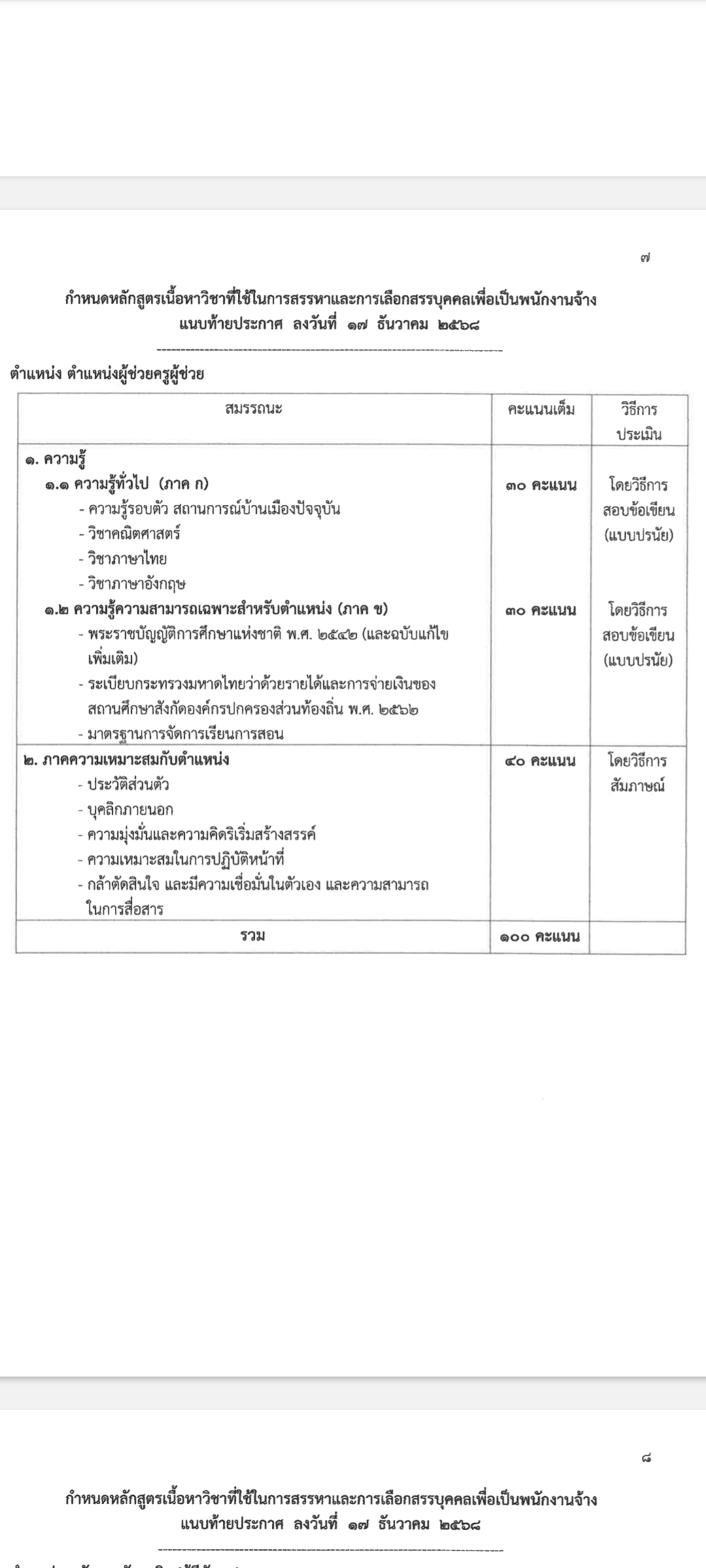 การสอบพนักงานจ้างของเทศบาล ตำแหน่งครู