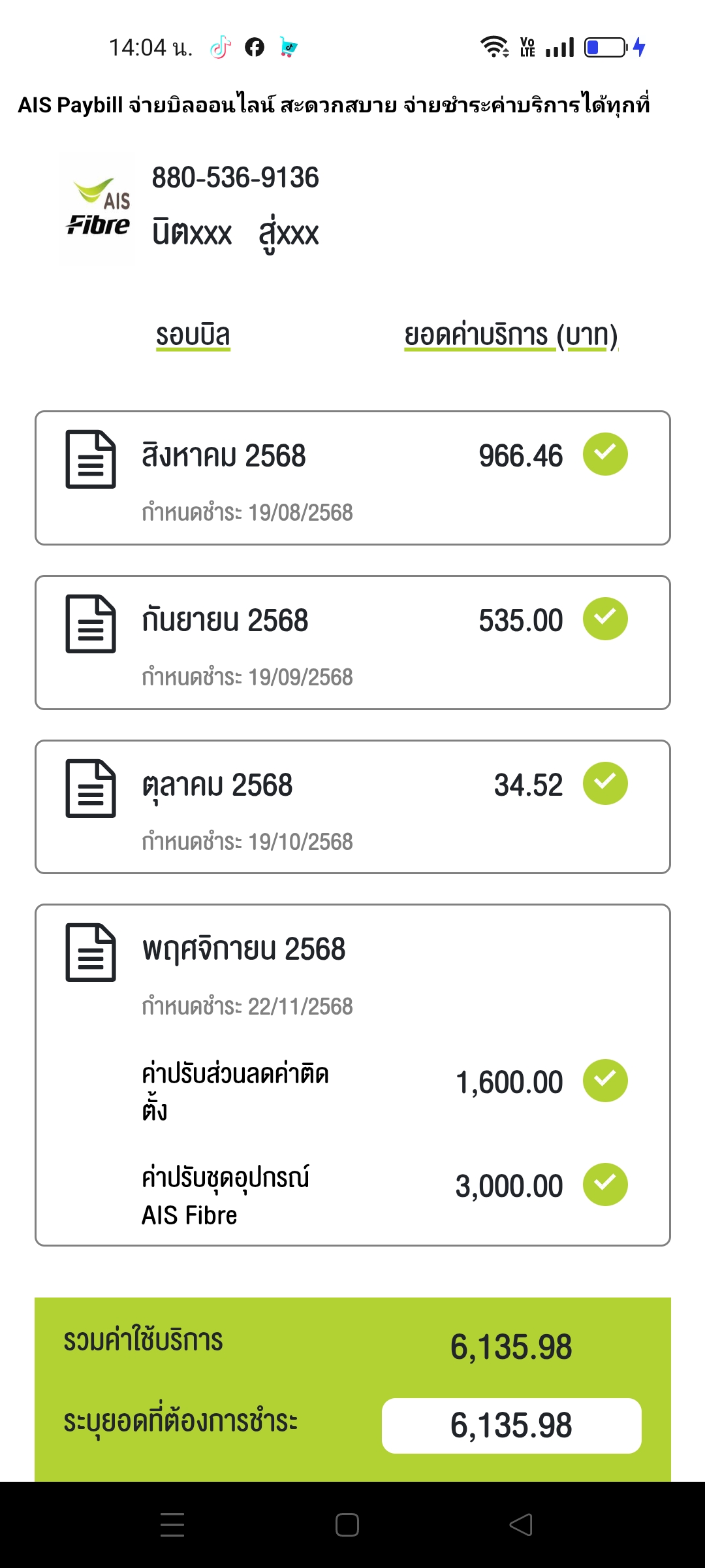 Ais จ่ายค่าเน็ตไปครบแล้วแต่ยังไม่เปิดสัญญาณไม่มีsmsส่งมาด้วย