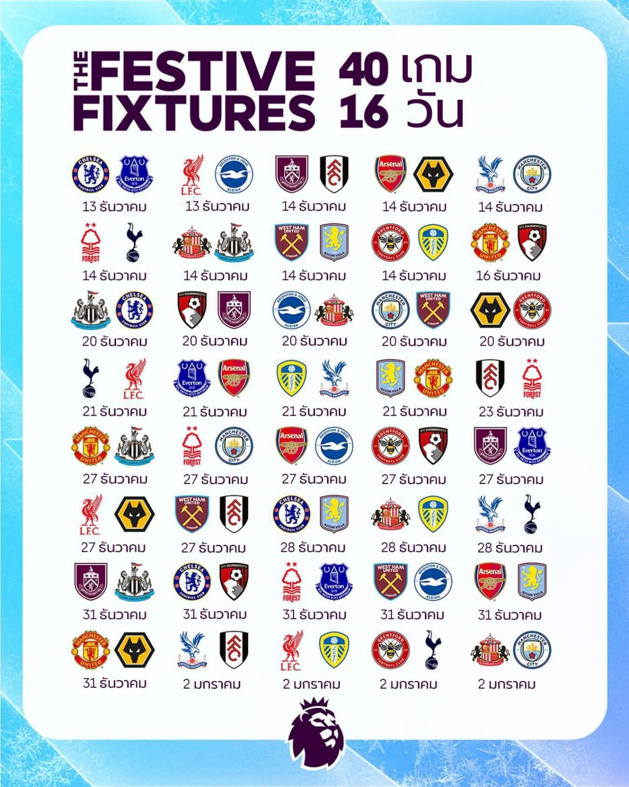 พรีเมียร์ลีกช่วงนี้จะเป็นช่วง 2 สัปดาห์นรกแตก เพราะแข่งกันเยอะมาก
