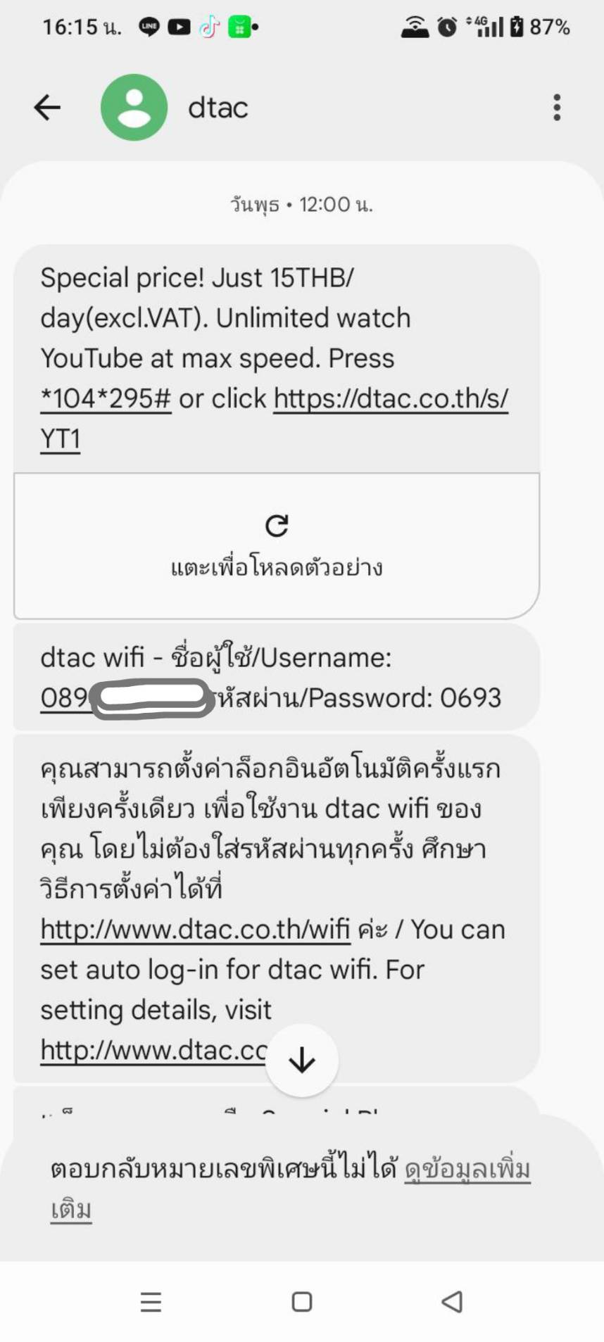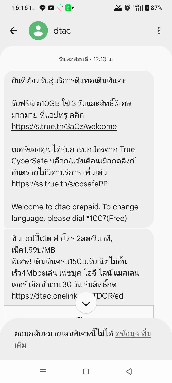 12:10 sms ต้อนรับสู่ dtac เติมเงิน