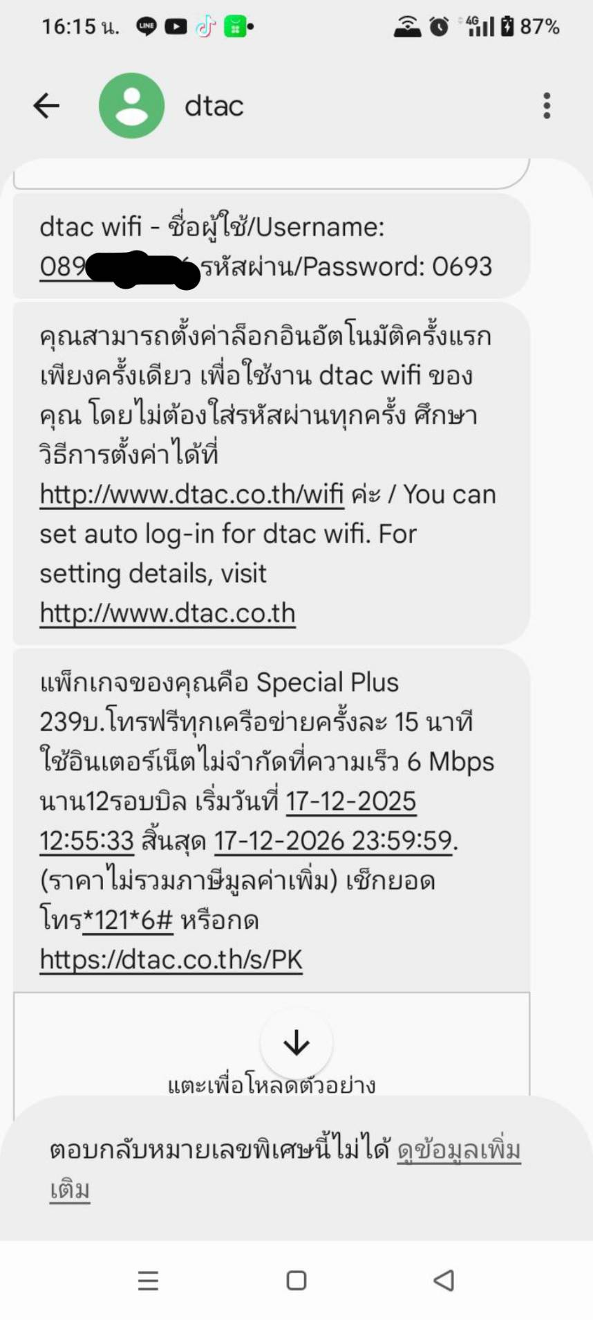มี SMS แจ้งแพ็คเกจรายเดือน 239 บาท