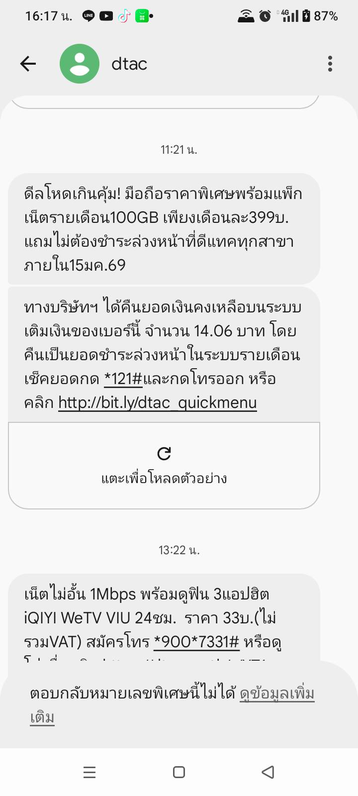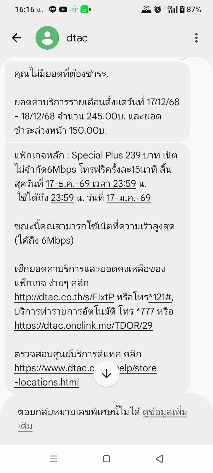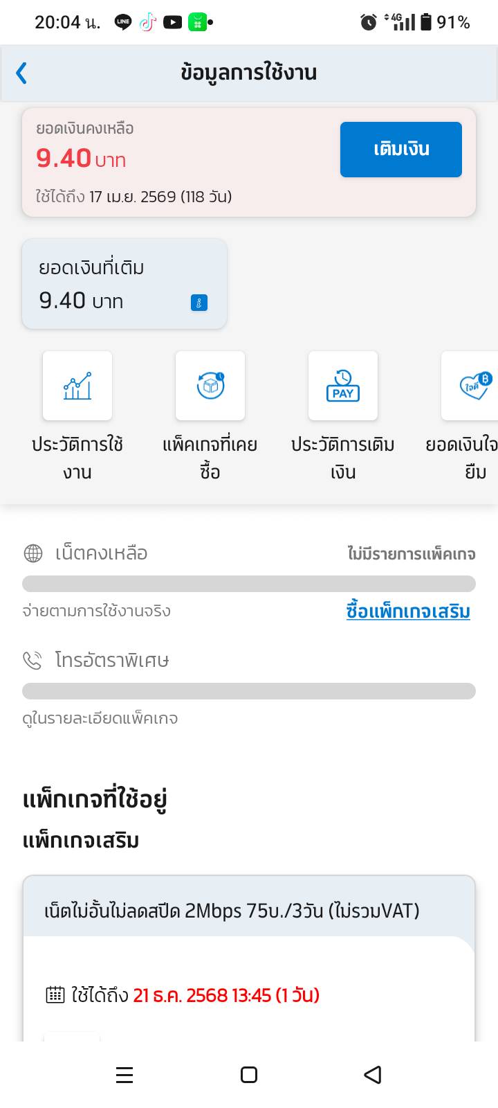 แม่กดที่ app dtac ให้ดูว่าทำไมเหลือ 0บาท
