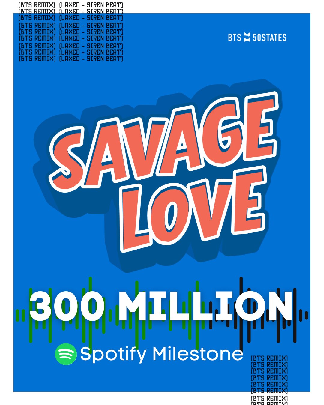 "Savage Love (Laxed – Siren Beat) [BTS Remix]" มียอดสตรีมทะลุ 300 ล้าน 🎉 เป็นเพลงที่ 47 ของวง BTS ที่บรรลุยอดนี้
