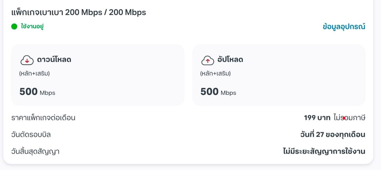อยากเปลี่ยนโปรโมชั่น อินเตอร์เน๊ตทรู ใครยังได้ใช้ โปร เดือนละ 199 บาท ละขออัพสปีดเป็น 500/500 หรือ ได้บ้างครับ เพราะราคาแพงเหลือเกิน