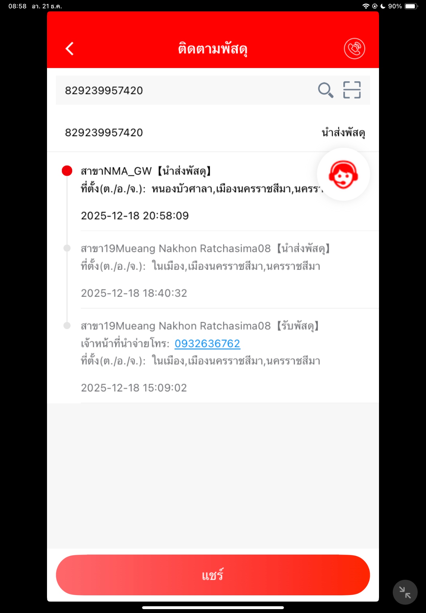 ต้นทางส่งของให้ตั้งแต่วันที่ 11/12/68 จนนี้วันที่ 14/12/68 ละ สถานะไม่อัพเดทเลย ผ่านไป 24ชม. ขึ้นค้างว่าจากสุราษฯมาหาดใหญ่ มันใช้เวลาเป็นวันเลยหรอครับ ของจำเป็นต้องใช้จนตอนนี้มีปัญหาละ เพราะไม่มีอุปกร