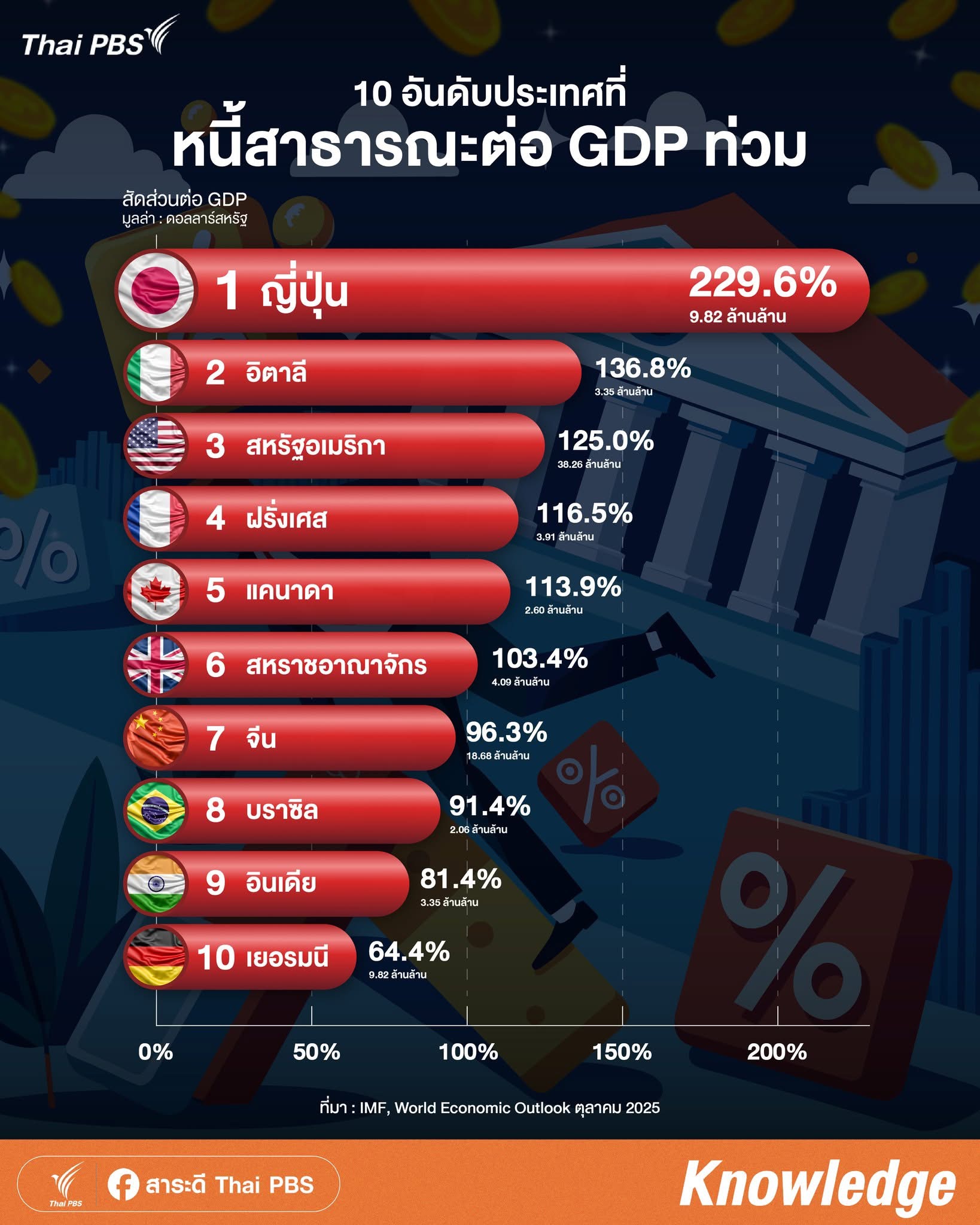 ไปดูกันว่าประเทศใดบ้างที่มีระดับหนี้สาธารณะต่อ GDP สูงติดอันดับหัวแถวของโลก