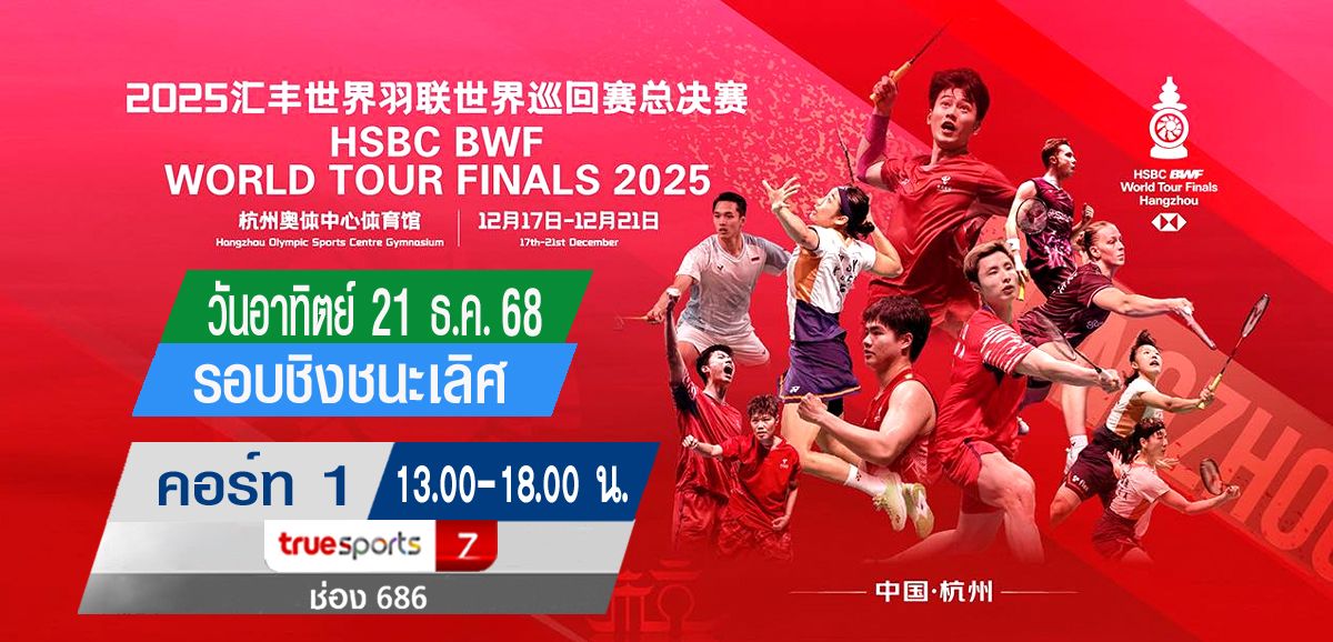 เชียร์สด ! แบดมินตัน HSBC BWF World Tour Finals 2025 : รอบชิงชนะเลิศ (21 ธ.ค. 68) (คู่แรกเวลา 13.00 น.)