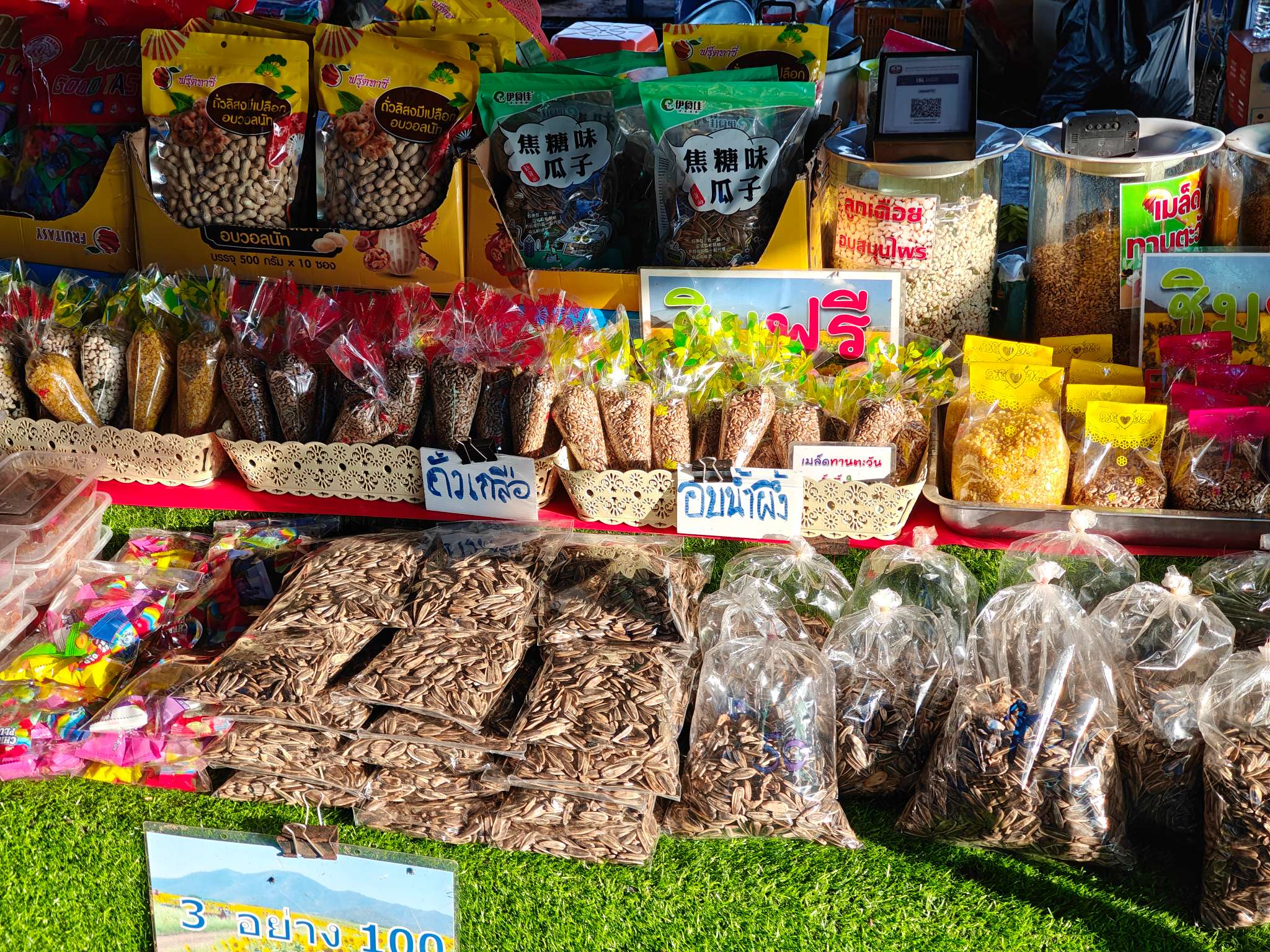เซตโปรตีนนมเนยคู่ชาชักมาเลย์ราคา 70 บาท ออนล็อคหยุ่น 79 บาท ข้าวผัดเบคอนกากเจียว 95 บาท ข้าวผัดกุ้ง 89 บาท ก๋วยจั๊บหมูกรอบ 50 บาท นมชมพู 45 บาท ร้านนี้ใช้คนละครึ่งได้ด้วยค่ะ อิ่มสบายกระเป๋า ดูภาพรวมๆไปเลยนะคะ