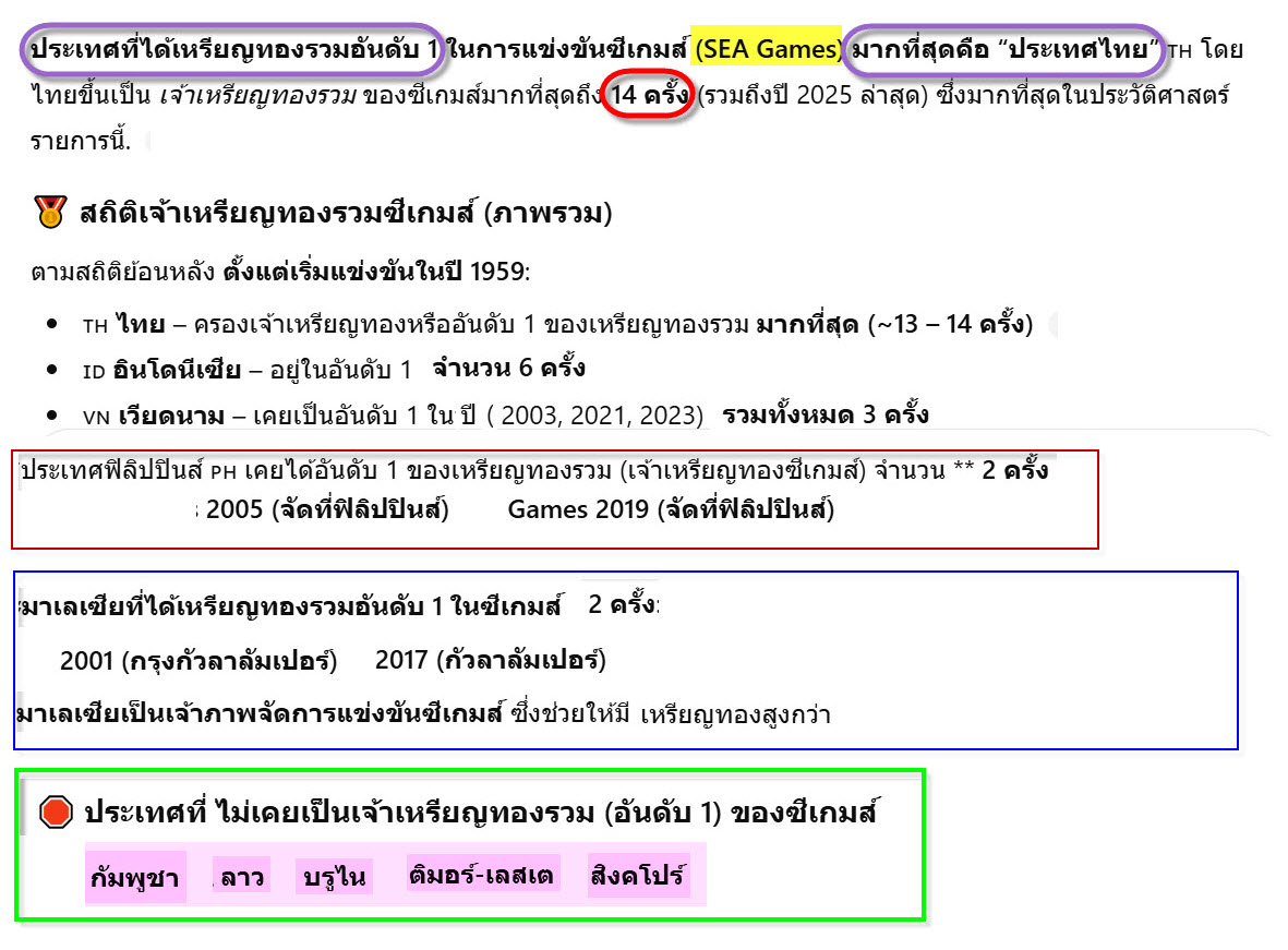 ส่วน มาเลเซียและฟิลิปปินส์ ได้อันดับ 1 ถึง2ครั้งในตอนที่เป็นเจ้าภาพ ซี่งปี 2017ที่มาเลเซียเป็นเจ้าภาพ มีการโกงมากที่สุดในประวัติศาสตร์