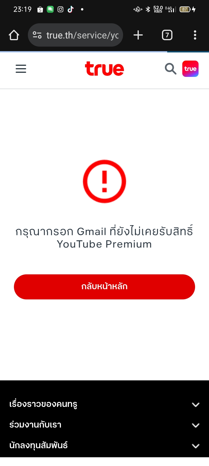 สมัคร YouTube Premium จาก True 159 บาท แล้วใช้ไม่ได้