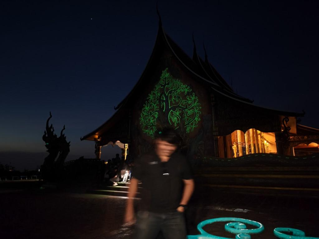 แสงอาทิตย์เดินทางลาจากไปอย่างรวดเร็วจนใจหาย ท้องฟ้าพาเราเข้าสู่ Night Mode แสงสีเขียวจากสารทางวิทยาศาสตร์ที่รอคอยเริ่มปรากฎขึ้นเด่นชัดในความมืด บริเวณพื้นทางเดินขึ้นลายส่องสว่างท่ามกลางความมืดกลมกลืนกับแสงไฟสีส้มที่ฉายส่องออกมาจากภายในโบสถ์ "ลงตัว..บอกได้คำเดียวว่าลงตัว"