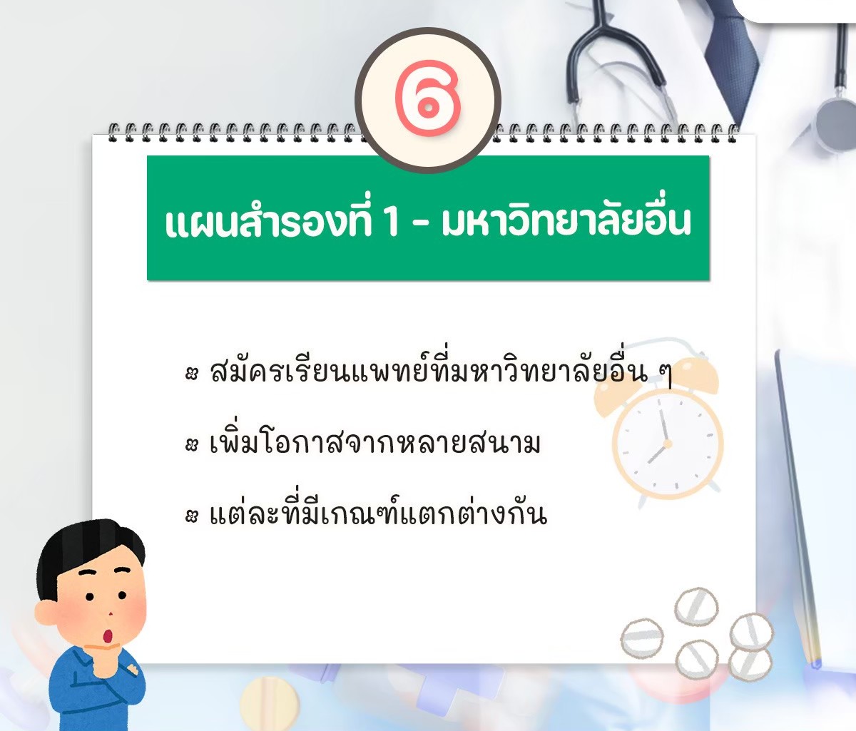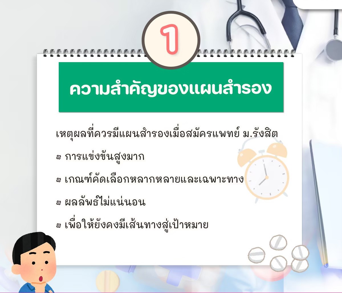 "กลยุทธ์แผนสำรอง" ครับ เพราะการเป็นหมอที่เก่ง ต้องเริ่มจากการวางแผนที่ดี!