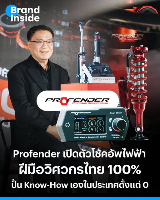 - Profender แบรนด์ช่วงล่างสัญชาติไทย ได้เปิดตัวนวัตกรรมใหม่อย่าง Smart Electric Suspension Control หรือโช้คอัพอัจฉริยะที่ควบคุมด้วยระบบไฟฟ้า พัฒนาโดยคนไทยล้วน ๆ ไม่มีการซื้อ Know-how จากต่างชาติ ถือเป็นการรุกตลาด Smart Suspension อย่างจริงจัง รองรับรถหลากหลายประเภท ตั้งแต่ปิกอัพ, SUV, รถตู้ ไปจนถึงรถเก๋ง ทั้งค่ายญี่ปุ่นและค่ายจีน