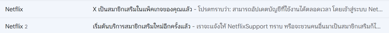 ได้รับเมลล์มา 2 รอบจาก Netflix รอบแรกผมก็ไปกดยกเลิกสมาชิกเสริมและลบแอคเคาท์เสริมไปเพราะไม่รู้จัก แต่หลังจากนั้นวันเดียวกันช่วงค่ำก็มีเมลล์ส่งมาอีกแบบนี้ งงมากกมันเกิดขึ้นได้ยังไง โทรไปเบอร์ 1800012674 ก็ไม่มีบริการภาษาไทยครับ แม่เจ้าคงต้องไปเข้าคอร์สเรียนภาษาเพื่อไปคุยกับเจ้าหน้าที่ NF แล้วมั้งนี่