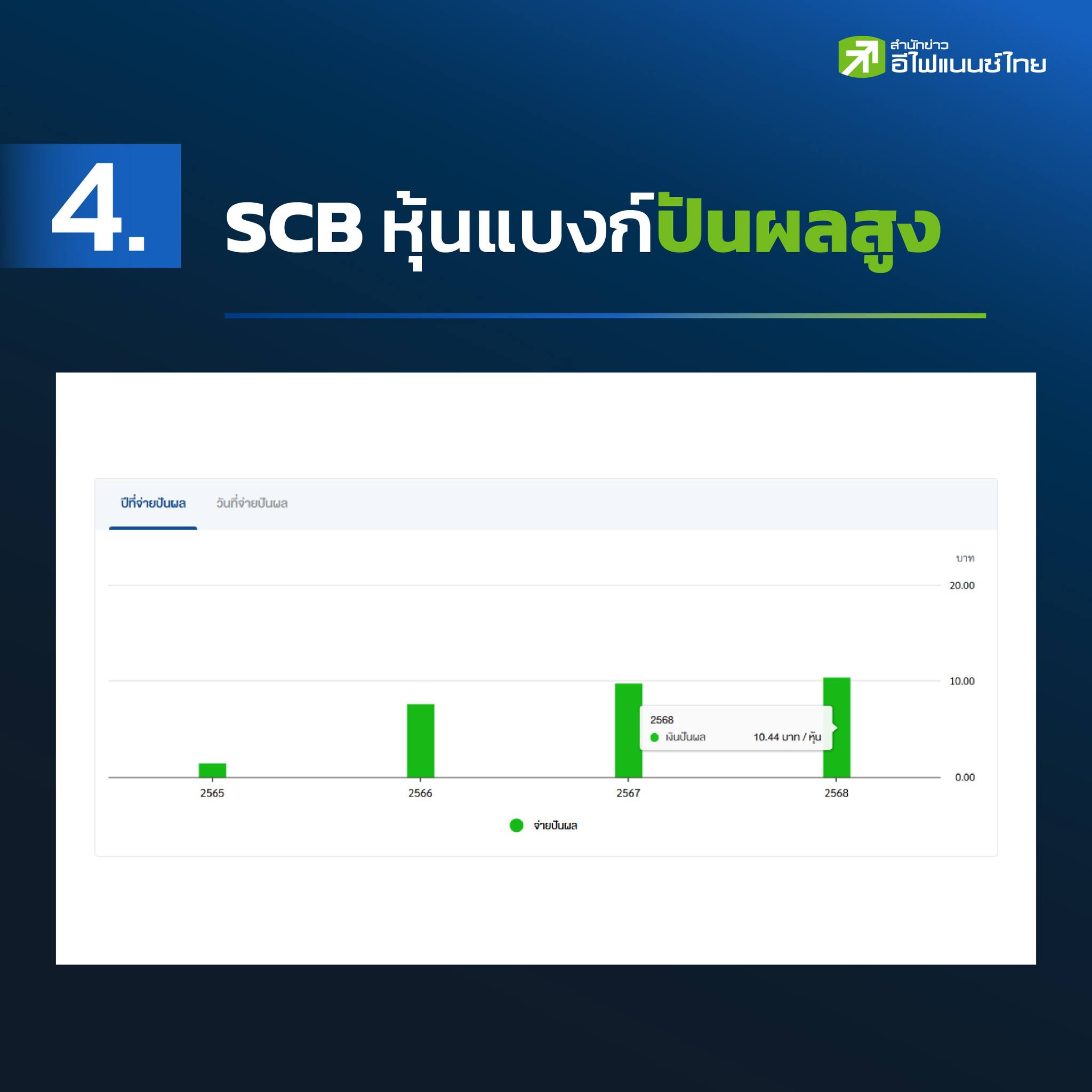 หากพูดถึงปันผล ปัจจุบัน SCB นับเป็นหนึ่งในหุ้นแบงก์สายปันผล เห็นได้จากการจ่ายปันผลในช่วง 3 ปีล่าสุด (ปี 66-68) ในระดับ 8-10 บาทต่อหุ้น คิดเป็น Yield สูงถึง 7-8% ต่อปี