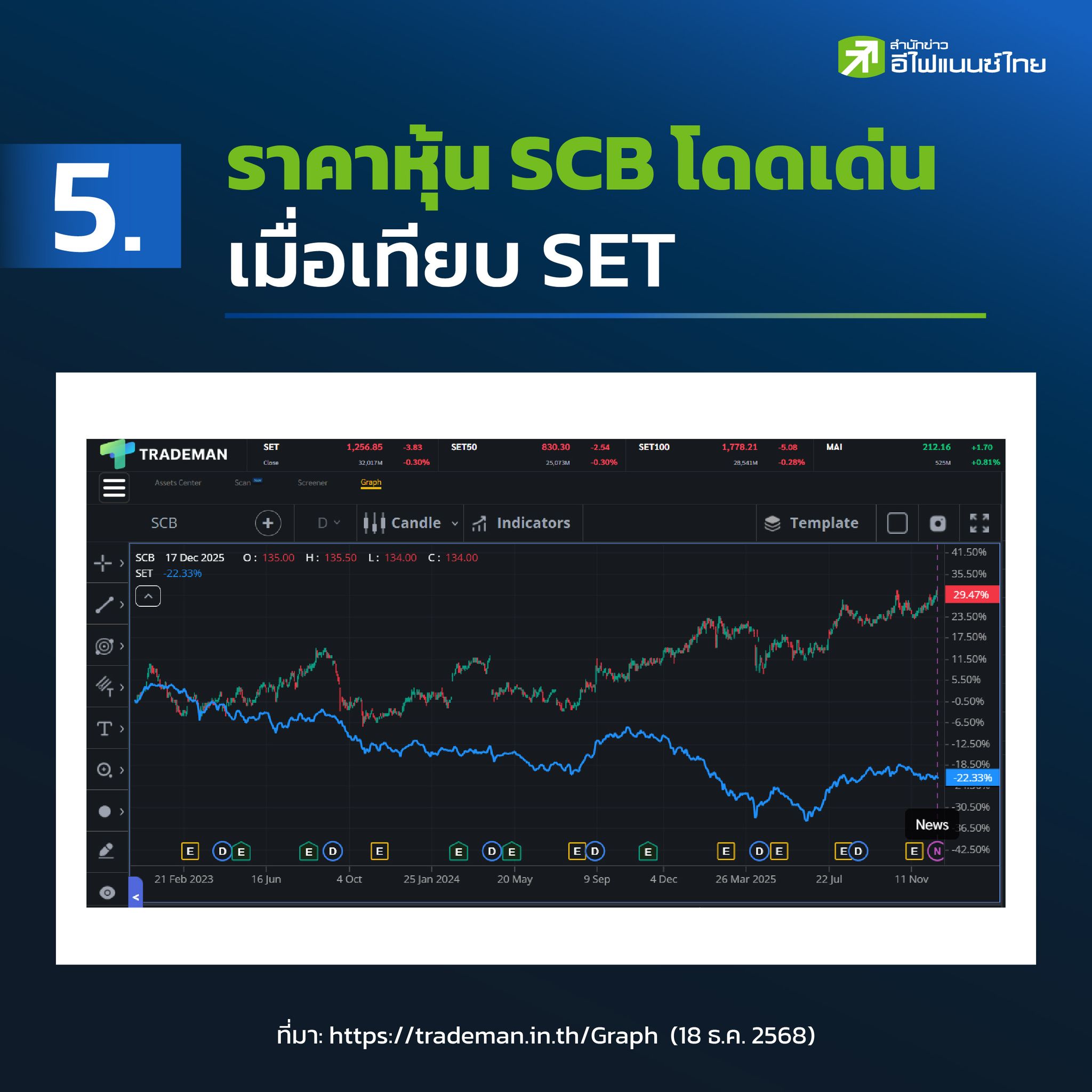 5. ราคาหุ้น SCB โดดเด่นเมื่อเทียบ SET