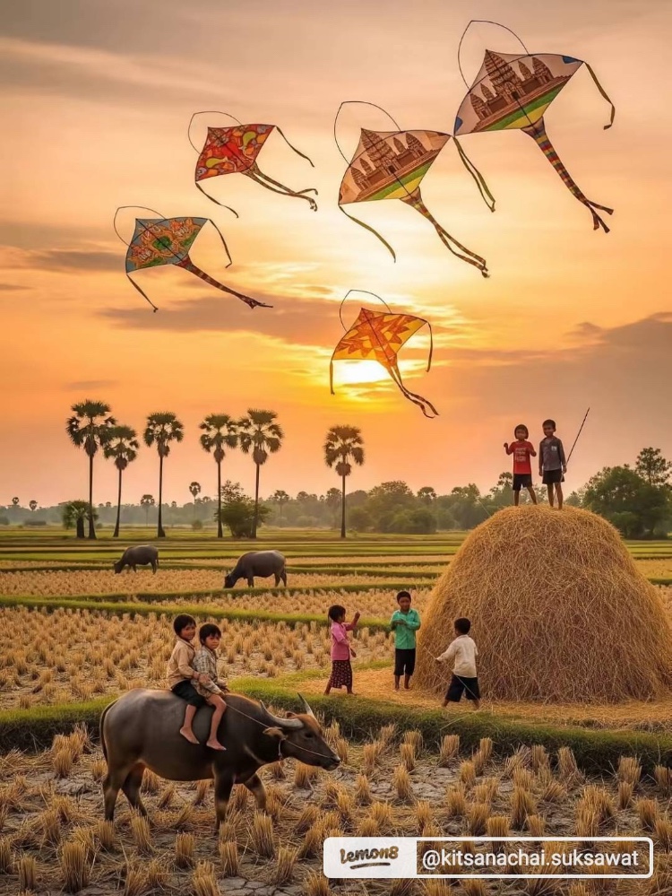 เพื่อนส่งรูปนี้มาสวัสดีวันจันทร์ เลยสงสัยว่าหน้า/ฤดูนี้จะมีเด็กๆ เล่นว่าวขี่ควายอยู่บ้างไหม
