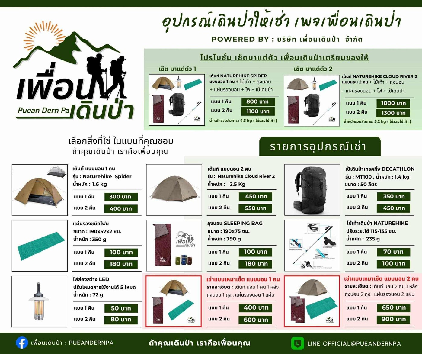 เพจนี้เค้ามีพวกอุปกรณ์ให้เช่า สำหรับมือใหม่ครบๆ คนเริ่มเดินใหม่ ที่อยากลอง แปะไว้ให้เลยครับ