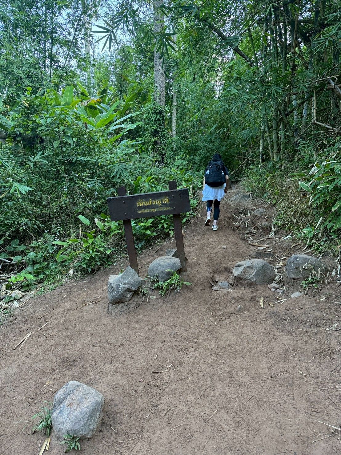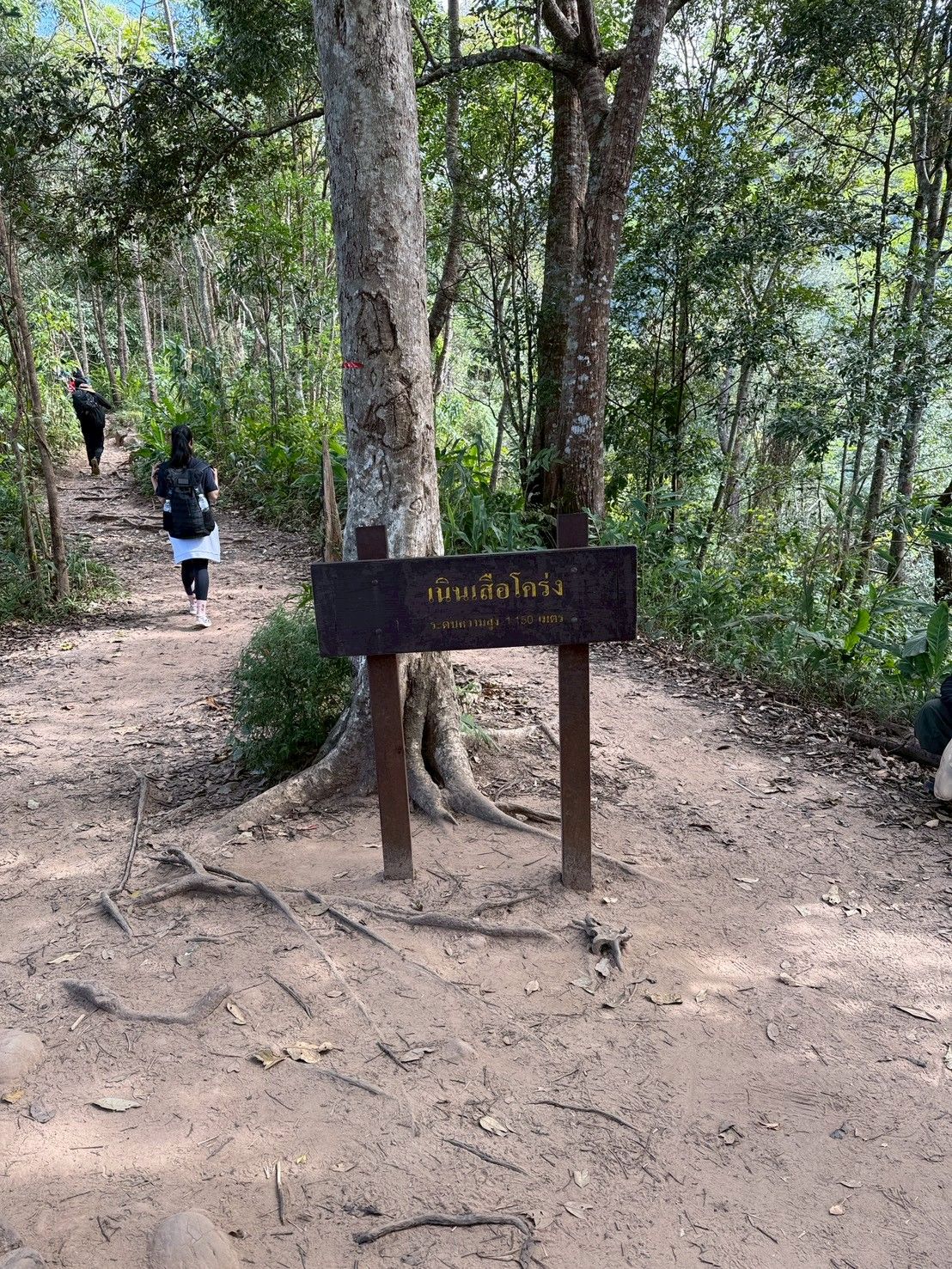 รอบนี้ขาขึ้นจากข้างล่าง เดินข้ามน้ำตก ผ่านเนินส่งญาติ จุดเหนื่อยจุดที่หนึ่ง (แต่ก็ยังไม่สุด) ไปถึงจุดพัก กลางทาง ป้าย 3.5 โลจากจุดเริ่มน้ำตก และอีกโล3.5 ถึงลานกางเต็นต์