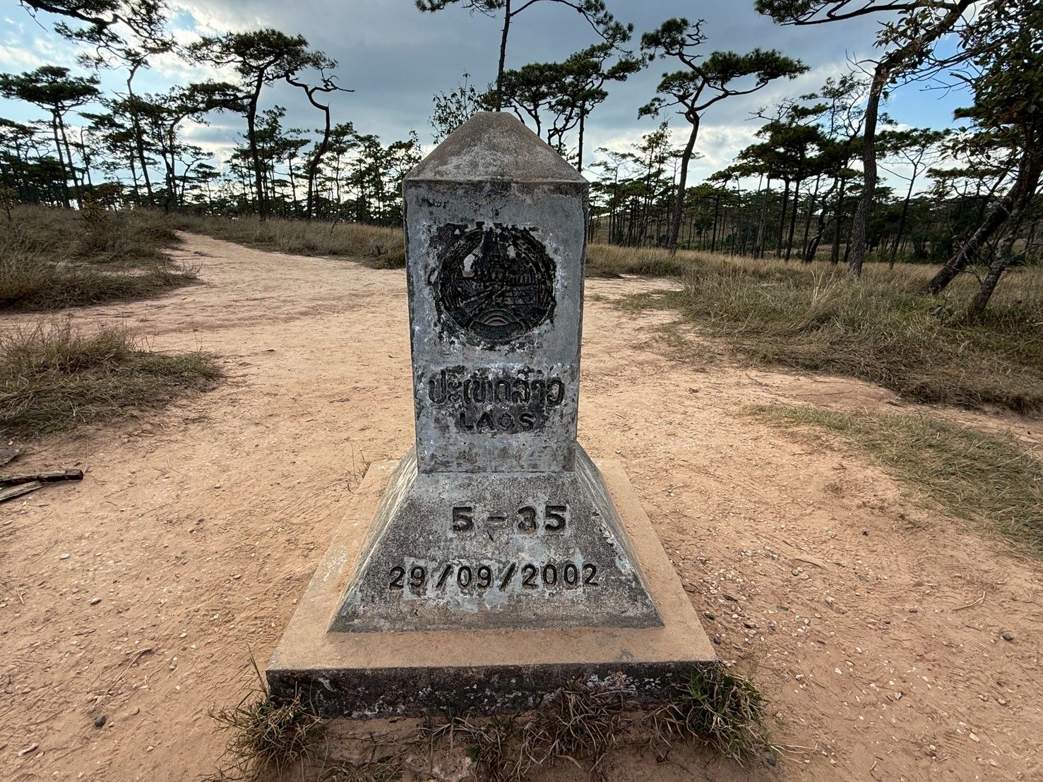 หมุดหลักเขต ชายแดนไทยลาวที่ 5-35 บนสันเขา เหมือน ที่เรา ปักปันกับกัมชา แต่จุดนี้ ณ ตอนนี้เรไม่มีปัญหา แมัะมีป้ายห้ามเข้า แต่ก็เดินข้ามกันไปมาได้