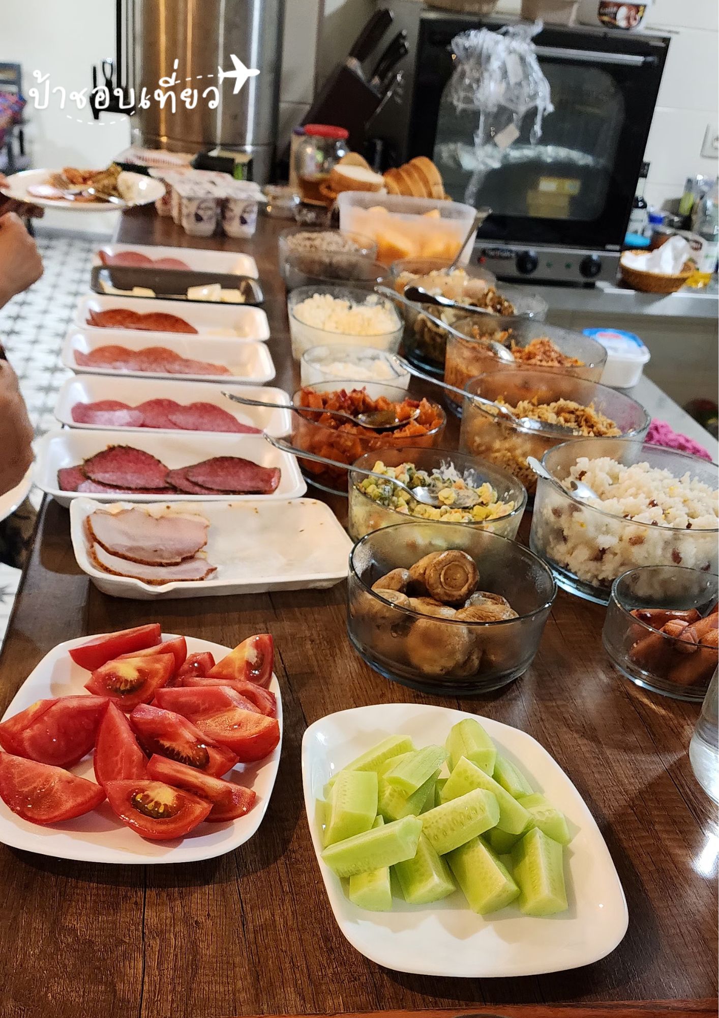 บอกที่เคาน์เตอร์ว่าป้าๆ จะกินอาหารเช้า 7 โมง