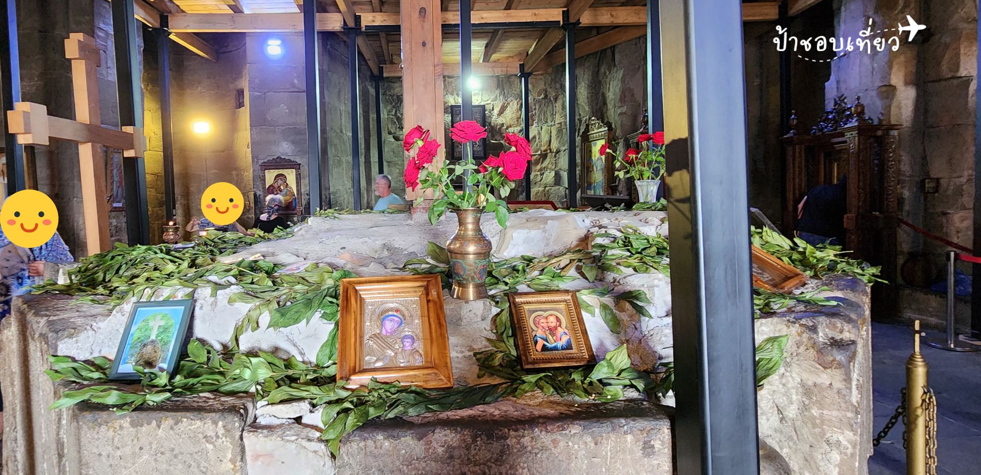 เลยถูกฝังไว้ที่นี่พร้อมกับเสื้อคลุมของพระเยซู