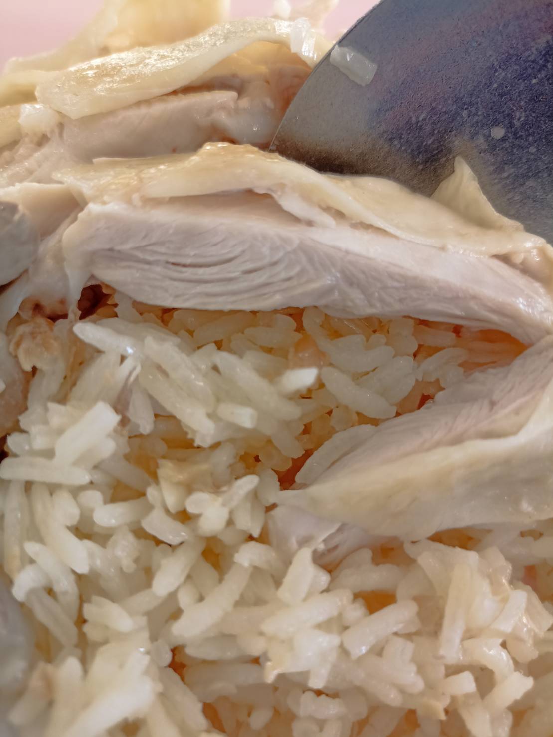 ข้าวไม่แฉะและก็ไม่แข็ง ข้าวนุ่มกำลังดี ข้าวมีกลิ่นหอมมันไก่ข้าวเรียงเม็ดมาดูน่ากิน