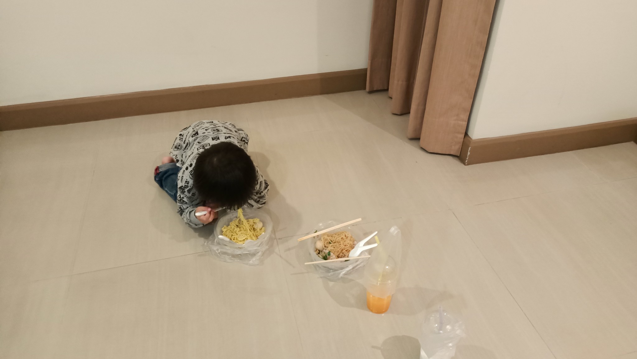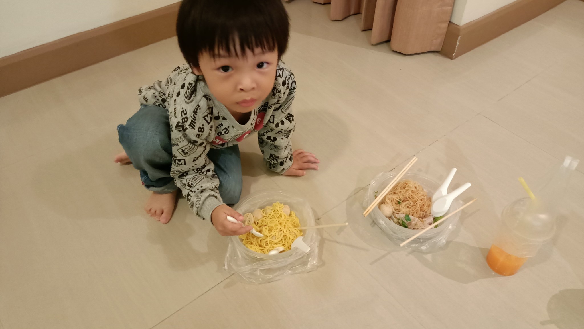 พอเข้าโรงแรมเลยต้องประหยัดกันหน่อย เหลือแค่บะหมี่ถ้วย ละ 50 ใช้คนละครึ่งเหลือ 25